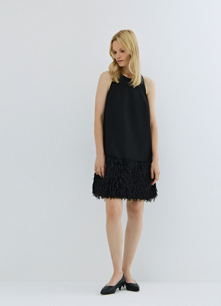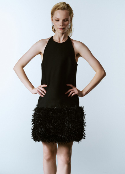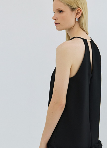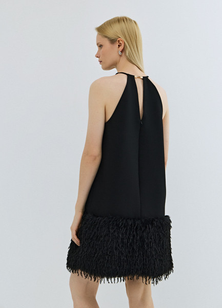 Платье мини с декором из перьев, Черный