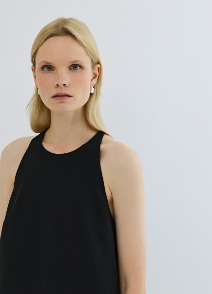 Платье миди с асимметричным вырезом, Черный