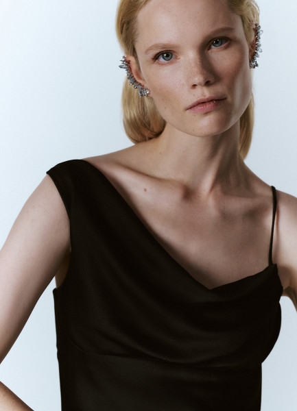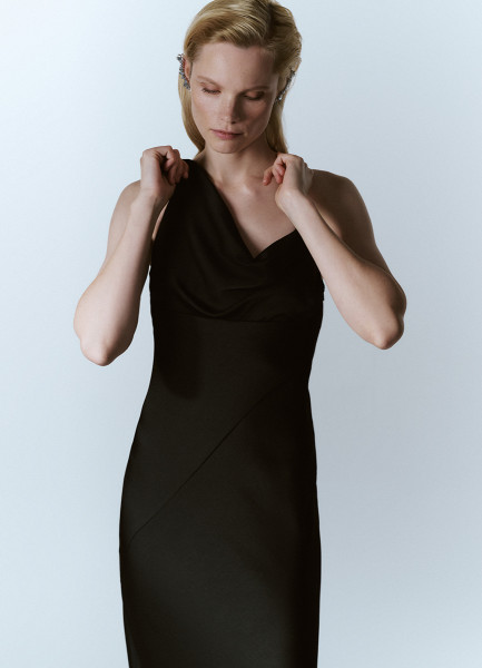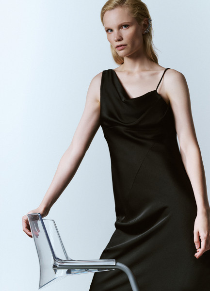 Платье миди с асимметричным вырезом, Черный