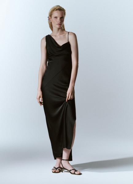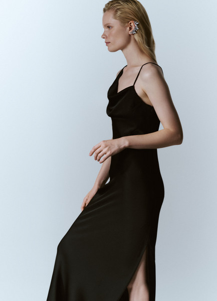 Платье макси из сатина, Черный