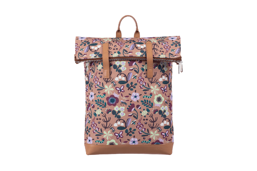 Рюкзак роллтоп выполнен из плотного канваса с принтом «цветы» и натуральной гладкой кожи. Изделие имеет одно основное отделение на молнии с отворотом и магнитные хлястики для фиксации. Снаружи под клапаном есть большой плоский карман для вещей первой необходимости, а со стороны спины — карман на молнии формата А4.
