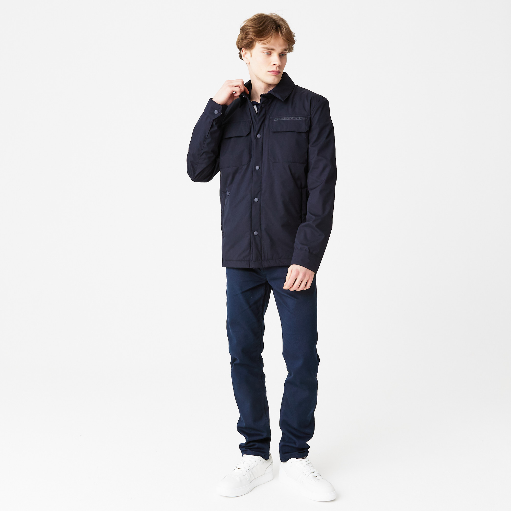 Воротник рубашки;\Накладные карманы на груди;\Прорезные карманы сбоку;\Надпись Lacoste на спине и на кармане спереди;\Застегивается на кнопки;\Логотип Lacoste над карманом\Материал: 100% полиэстер\Рост модели 188 см, размер одежды 48