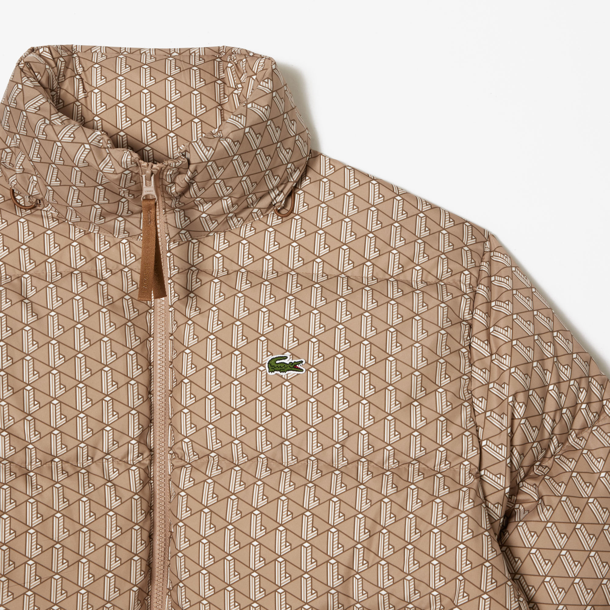Переработанный полиэстер\Потайной капюшон\Нижний край с регулируемой кулиской\Потайной карман внутри\Карманы на молнии по бокам\Монограмма по всему изделию\Логотип на груди\Материал: 100% полиэстер\100% полиэстер\ 90% пух 10% перо\Рост модели 189 см, разм...