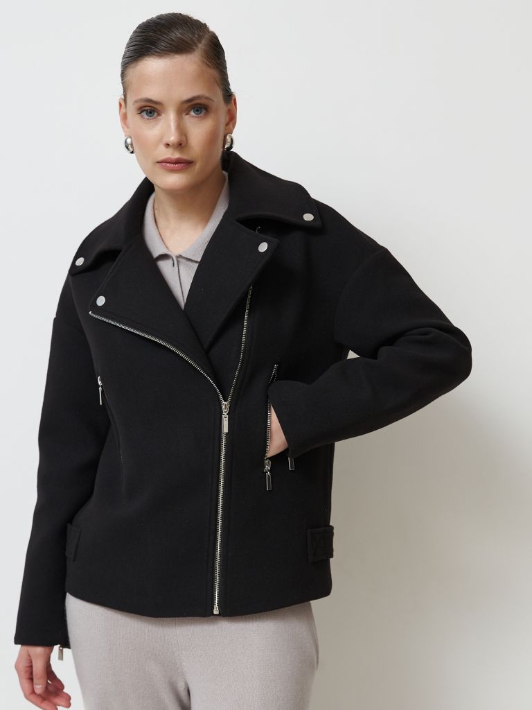 Женское черное пальто в стиле "косуха" — это сочетание элегантности и современного дизайна. Изготовлено из высококачественной шерсти, оно обеспечит комфорт и тепло в прохладную погоду. Асимметричная застежка на молнию и декоративные металлические элементы придают модели стильный и дерзкий вид. Свободный крой позволяет комбинировать пальто с различными образами — от повседневного до делового. Отличный выбор для тех, кто ценит качество и модный внешний вид.