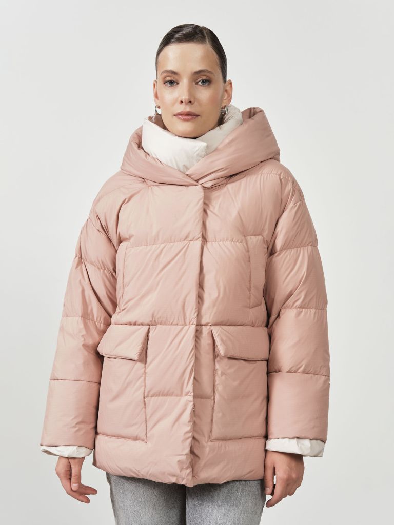 Женская куртка выполнена в нежном пудровом оттенке и сочетает актуальный дизайн с комфортом для холодного сезона. Модель имеет современный объемный силуэт и выглядит стильно в повседневных и городских образах.