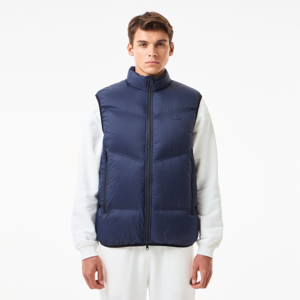 Стёганный жилет \ Легкая ткань из переработанного полиэстер\Передние карманы на молнии \Вышитый крокодил тон в тон на груди.\ Материал:100% полиамид \ 100% полиэстер