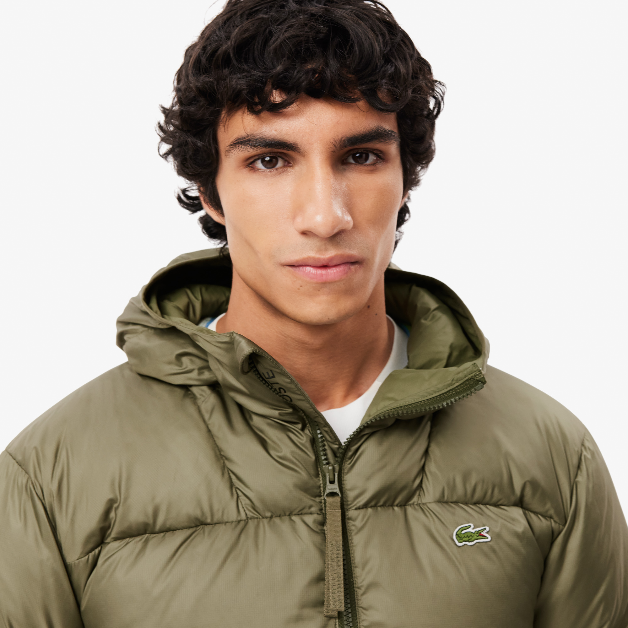 Текстура Ripstop : водоотталкивающая, ветрозащитная \ Наполнитель из пуха и пера \ Стеганая \ Утепленный дизайн\ Застежка-молния спереди \ Высокий воротник \ Классический капюшон \ Логотип на передней части \ Длинные рукава \ Эластичные манжеты \Нашивка
