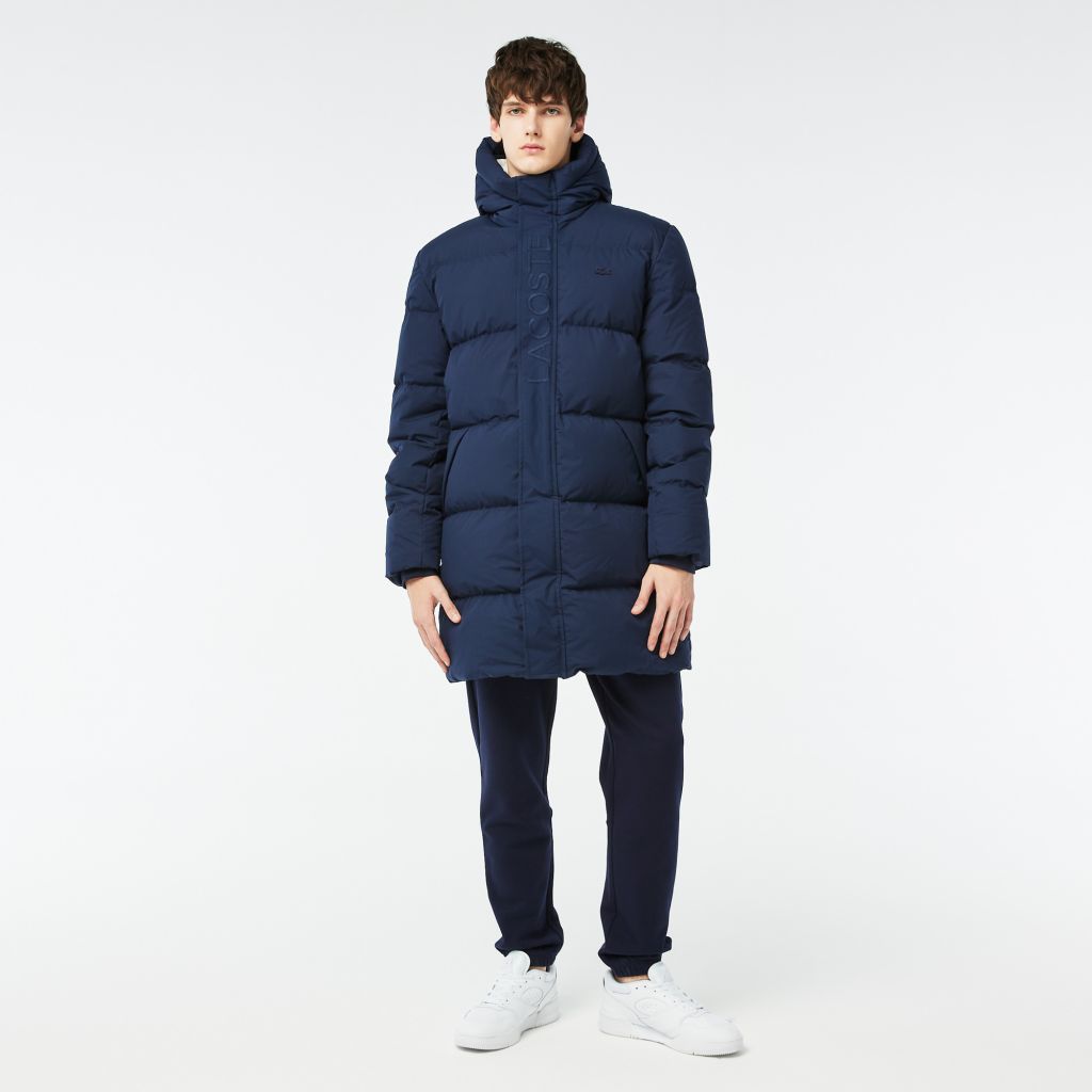 С капюшоном\Прорезные карманы\Потайной карман на молнии\Утеплитель пух-перо\Удлиненная модель\Логотип в тон изделия на груди\Материал: 100% полиэстер\100% полиэстер\ 90% пух 10% перо