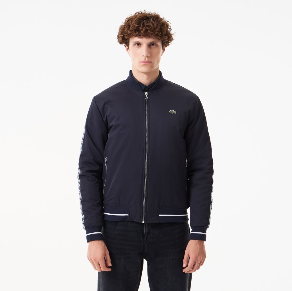Полоса с монограммой вдоль рукавов \ короткий ворот \ Контрастные манжеты и низ \ 2 внутренних кармана \ Материал: 55% хлопок 45% полиэстер