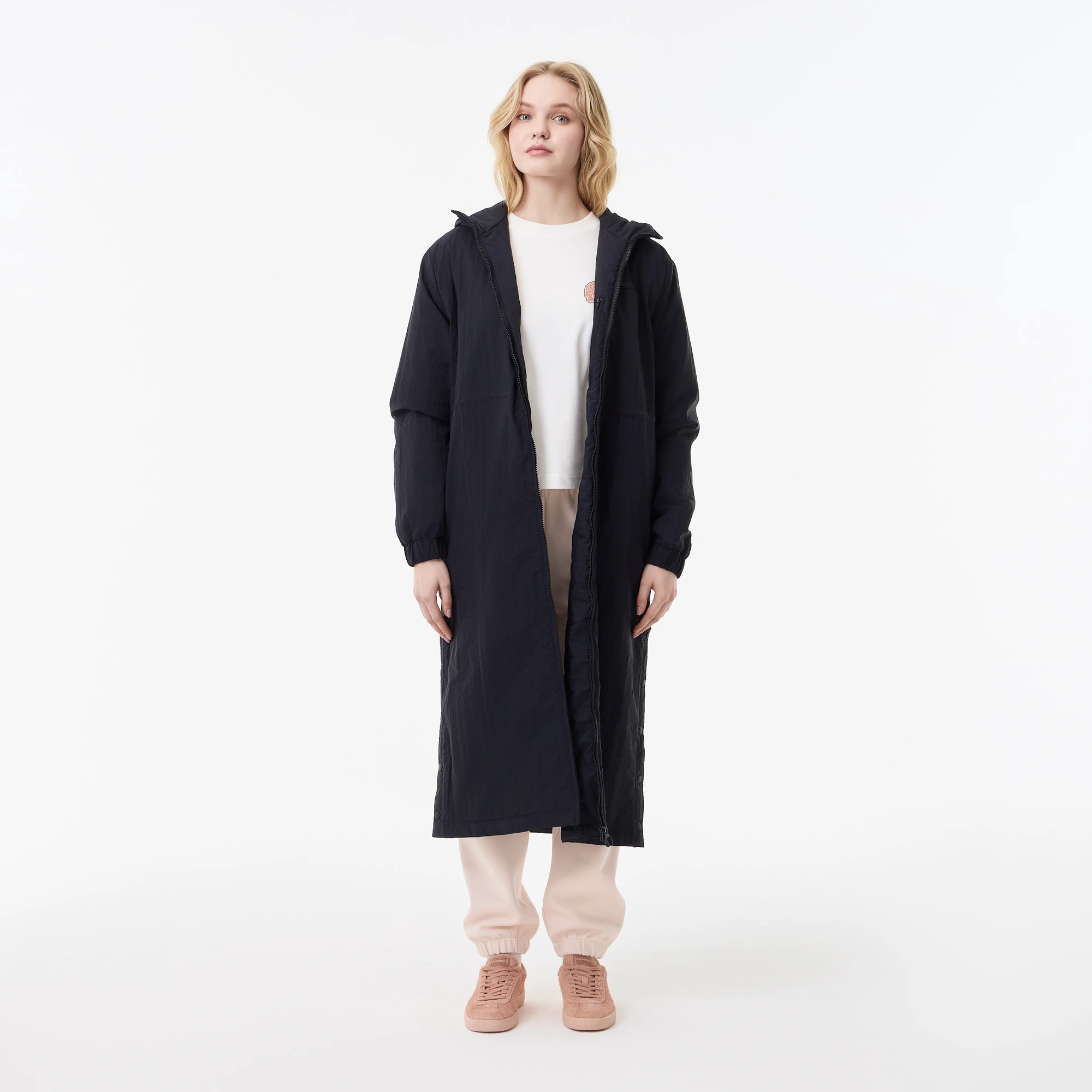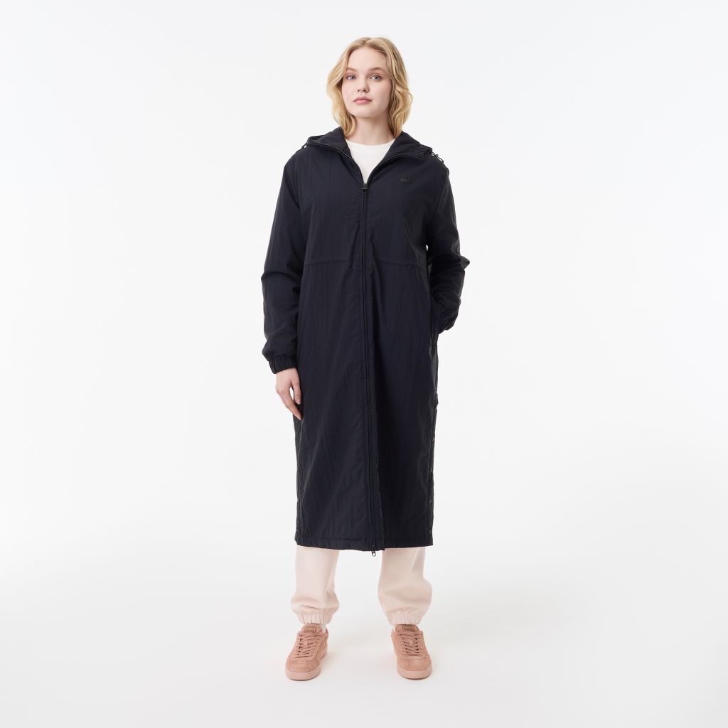 Женская длинная парка Lacoste с капюшоном и боковым клапаном на пуговицах