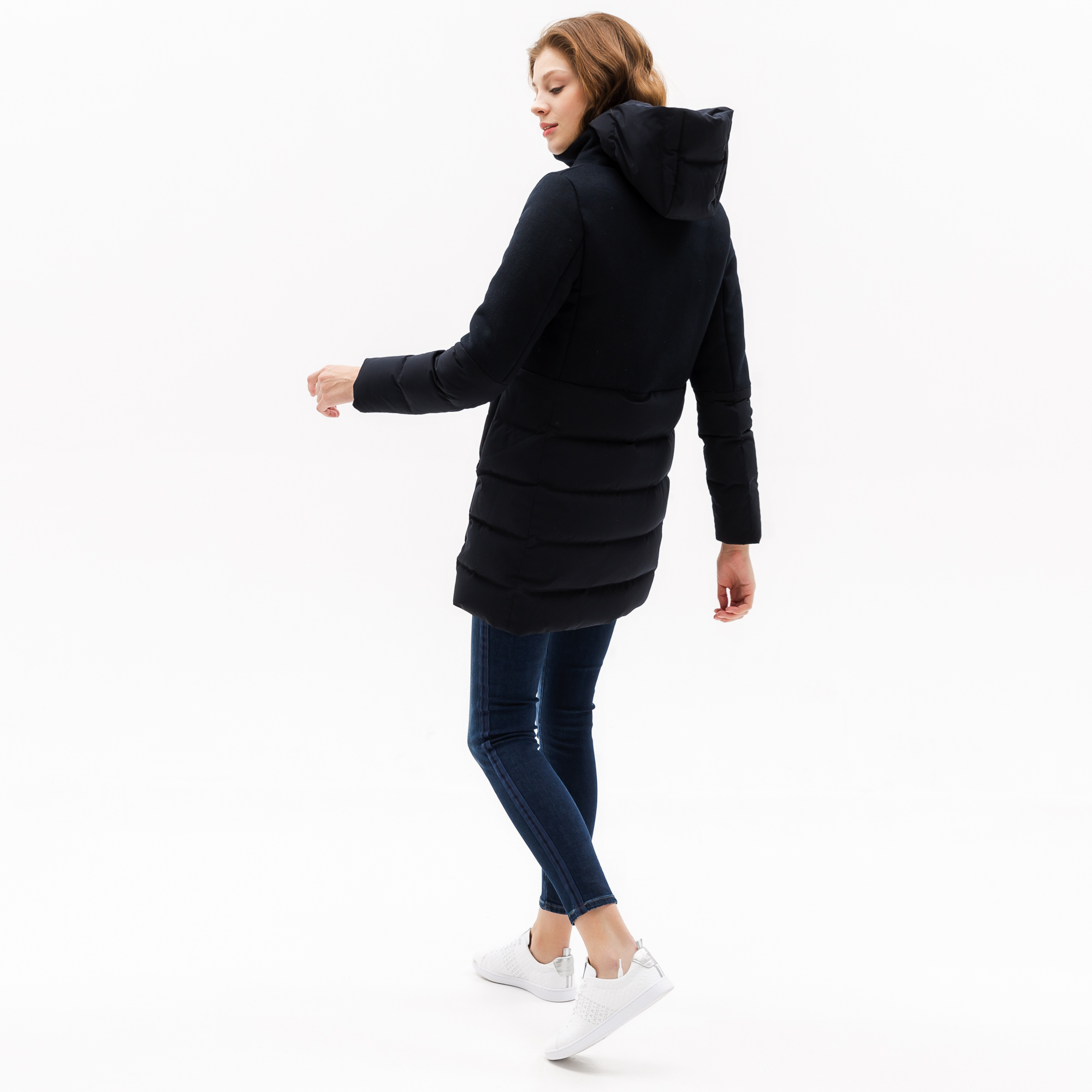 Стеганый\ Наполнитель из гусиного пера\ Съемный капюшон \ Информация о модели: Рост: 177 см, Грудь: 86 см, Талия: 60 см, Бедра: 88 см. \ Размер модели: 36 / S \ Материал: 1. Ткань 100% полиамид / 2. Ткань 60% шерсть 35% полиэстер 5% полиамид