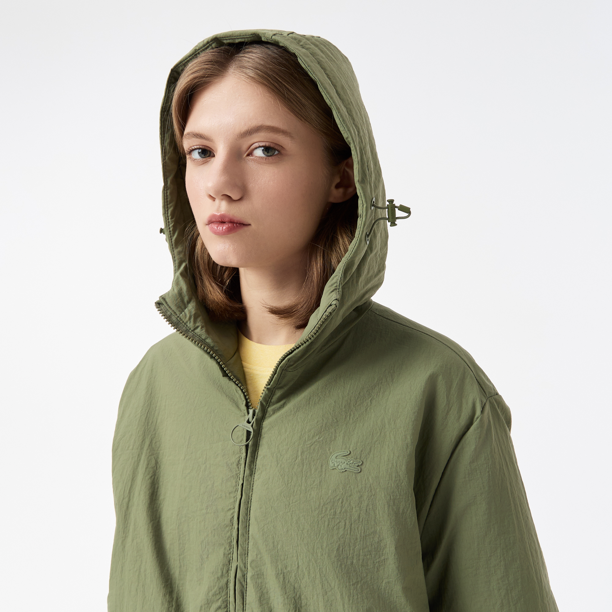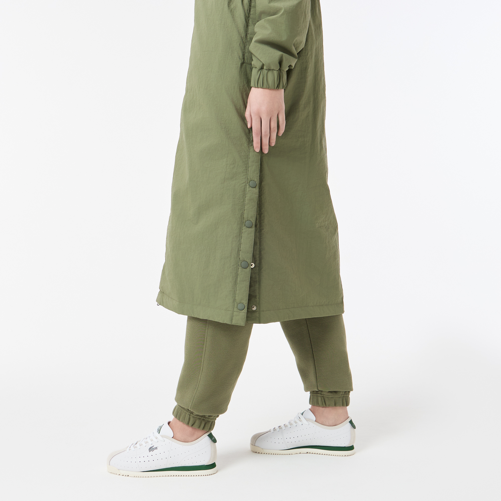 Женская длинная парка Lacoste с капюшоном и боковым клапаном на пуговицах