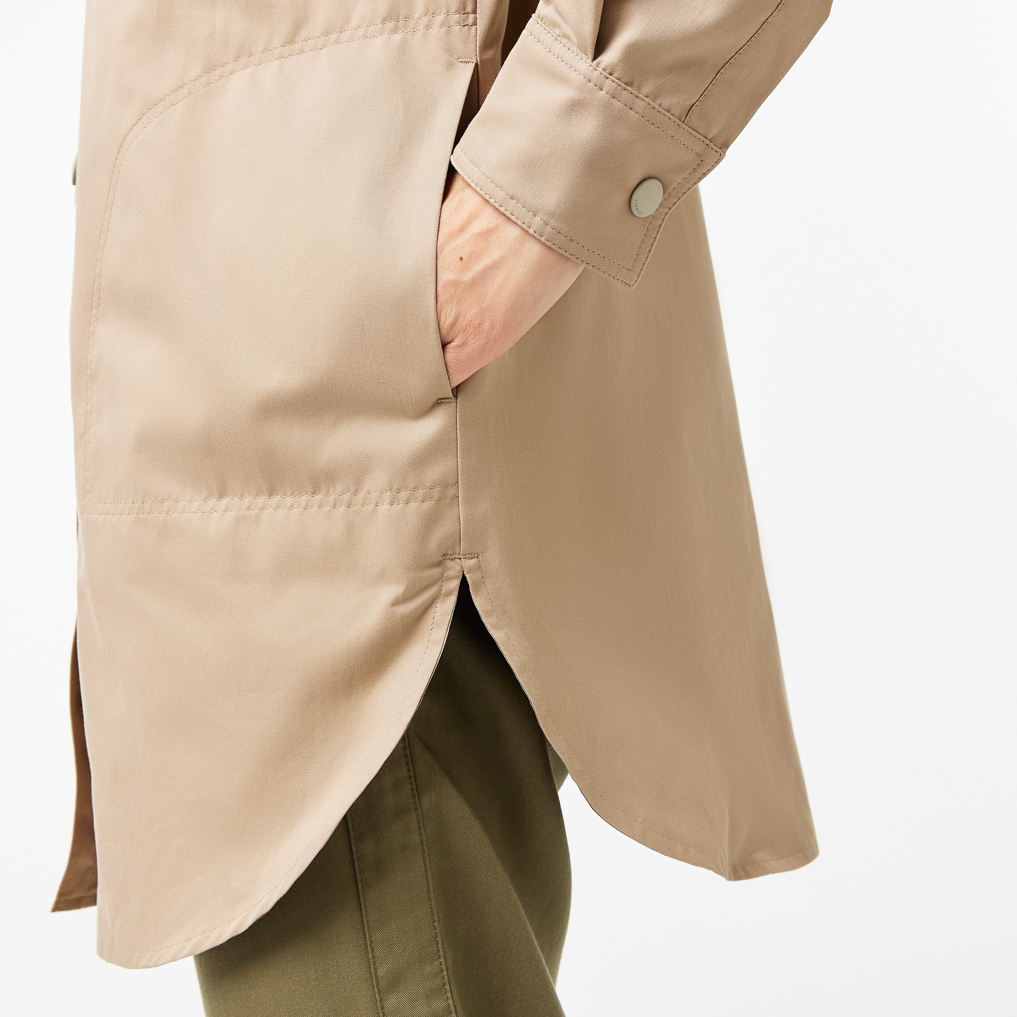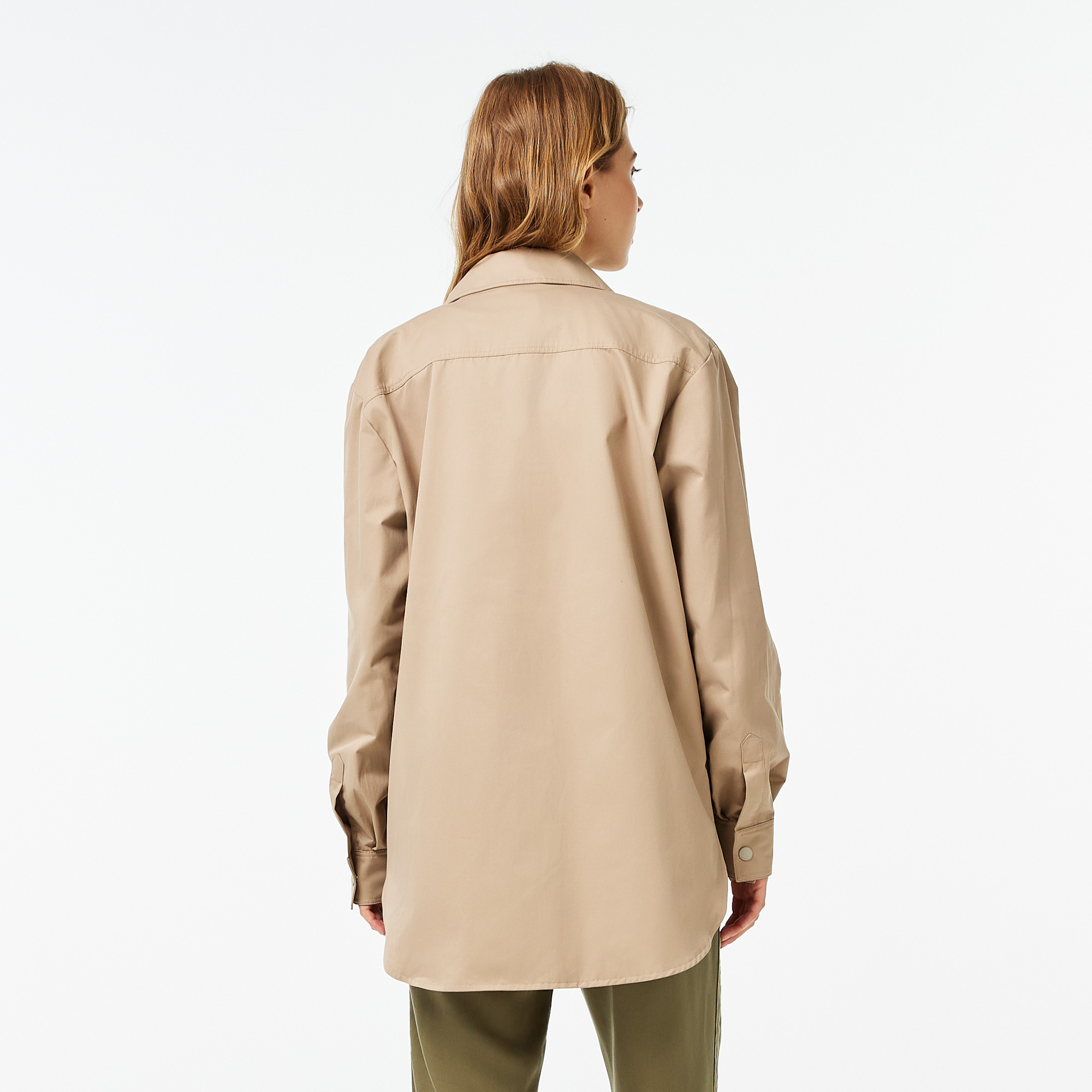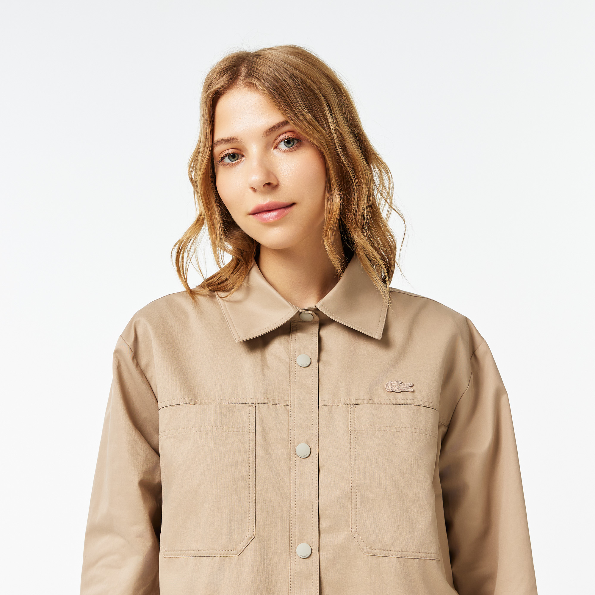 Острый воротник\Накладные карманы на груди\Застегивается на кнопки\Вышитый логотип Lacoste\Материал: 55% полиэстер 45% хлопок\Рост модели 174 см, размер одежды 36