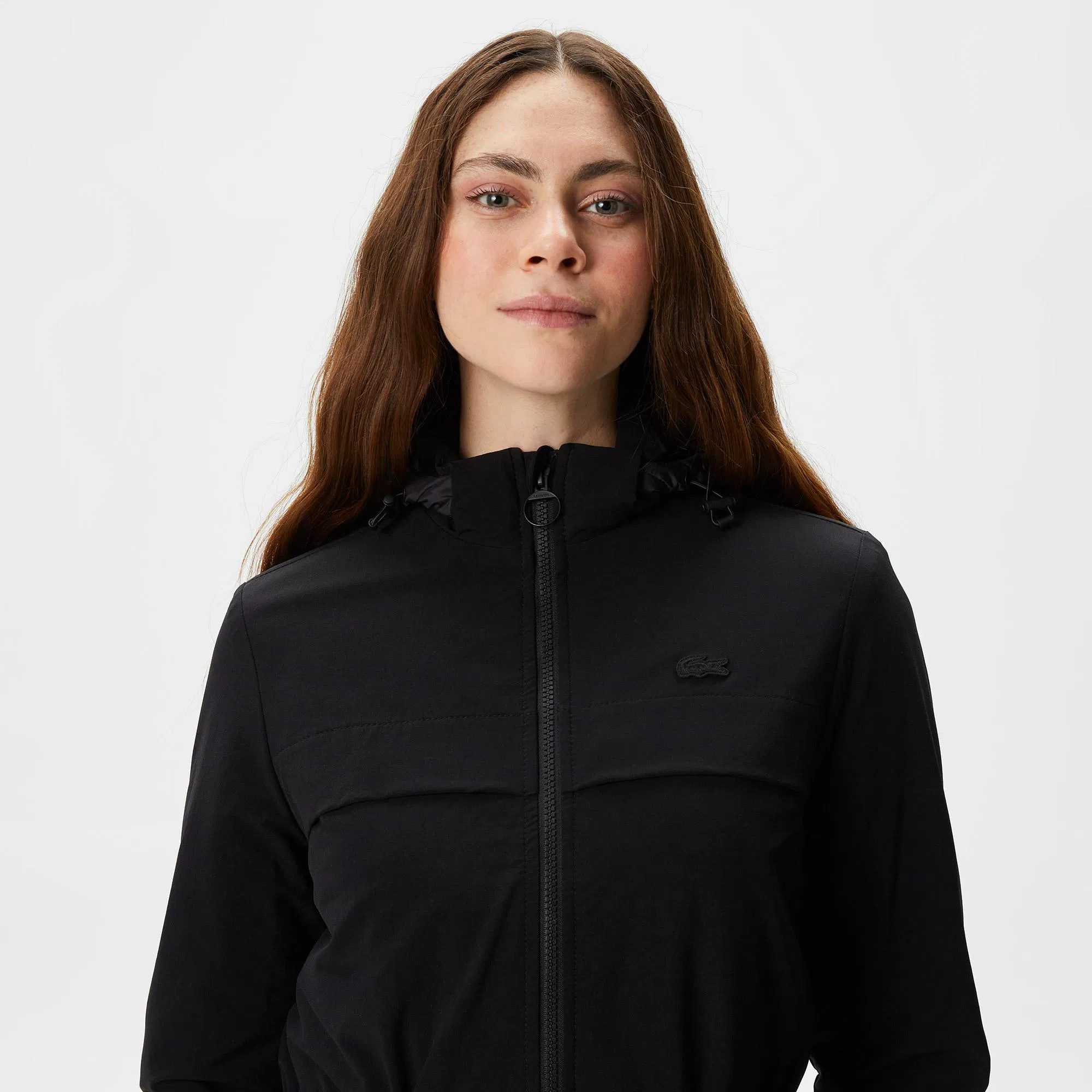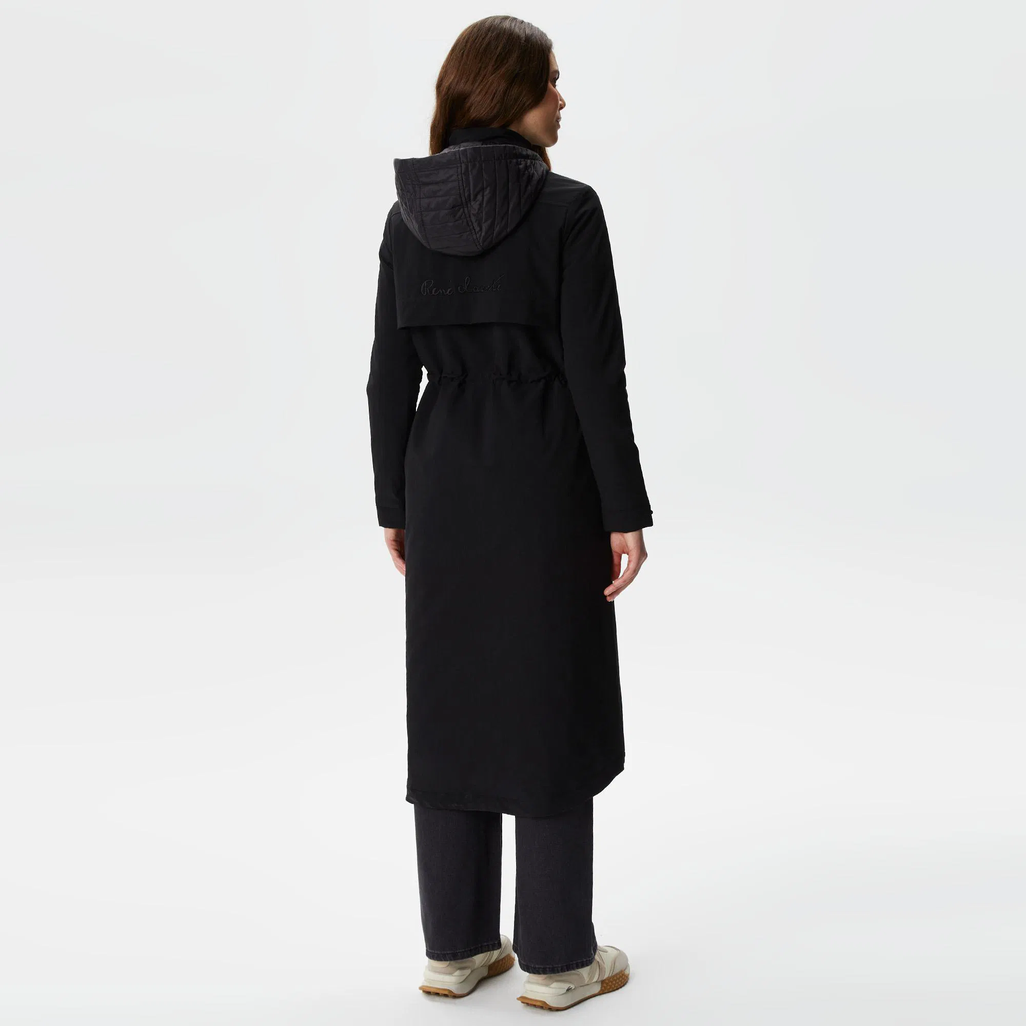 Удлиненная модель\Съемный капюшон\Регулируемая кулиска на талии\Карманы с клапаном\Двойная молния\Логотип на груди в тон изделия\Материал: верх-90% полиамид 10% эластан,подкладка-100% полиэстер\Рост модели 177 см, размер одежды 36