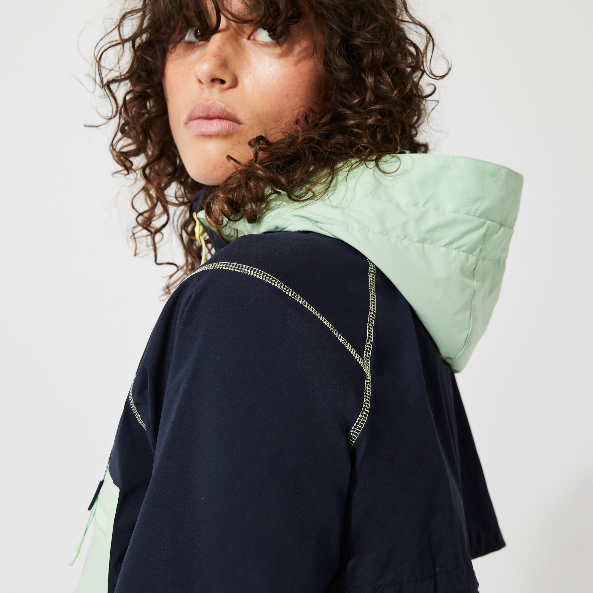 Капюшон с регулируемой кулиской и фиксаторами, контрастная застежка-молния. Подкладка из полиэстера и сетки. \ Контрастный карман на молнии спереди. \Эластичные манжеты на запястьях и низ штанин, контрастные детали на рукавах и корпусе, клапан сзади с рег