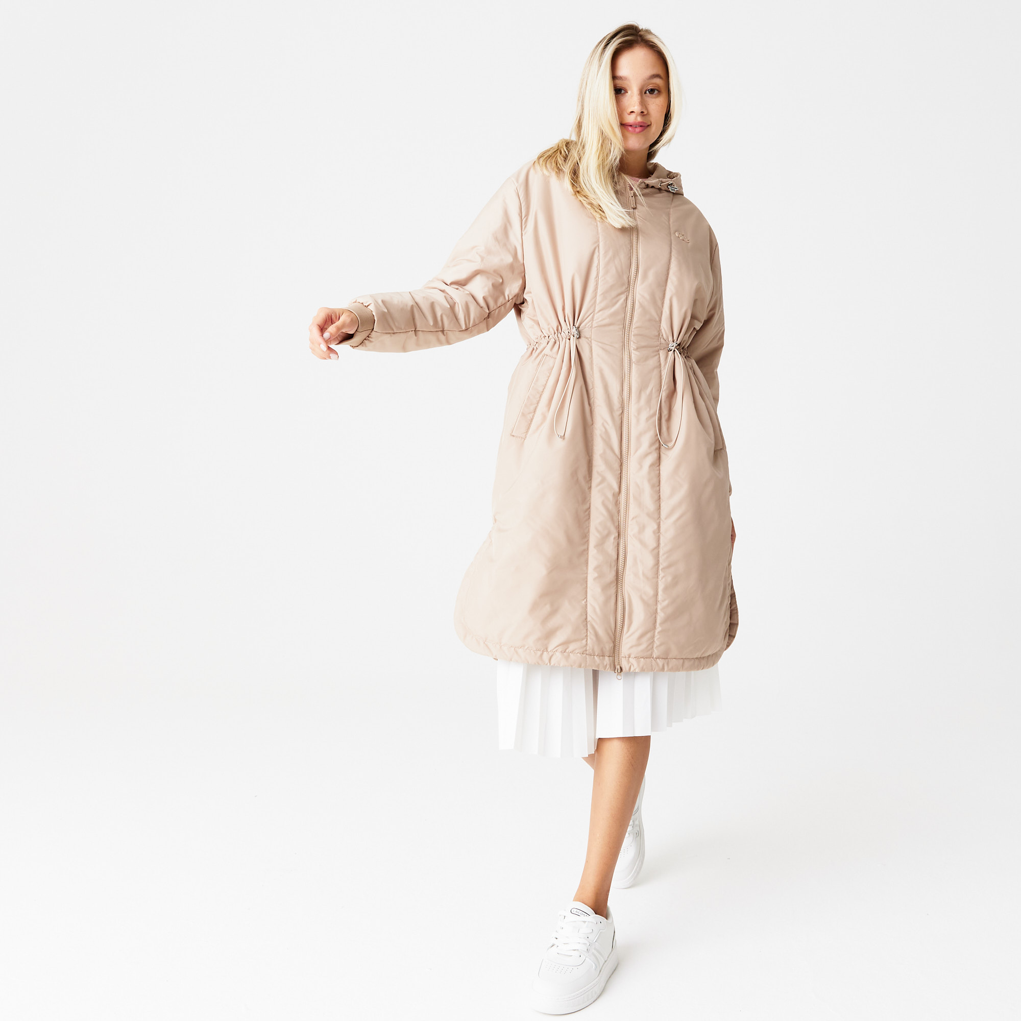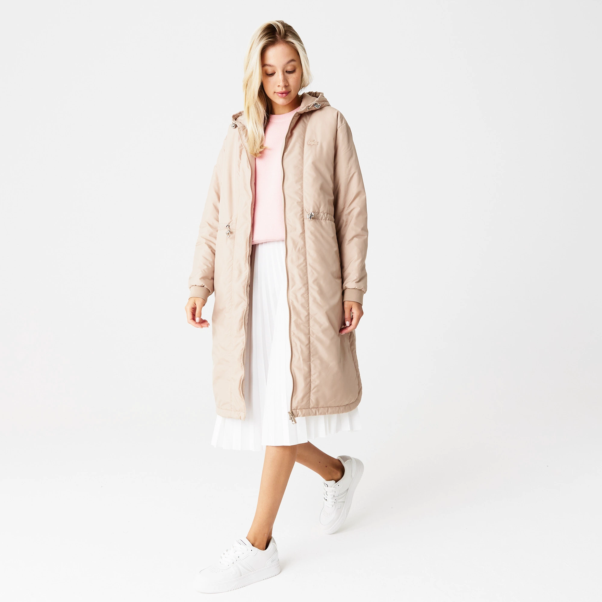 Капюшон, который защищает при любой погоде;\Кулиска для регулирования талии;\Два прорезных кармана;\Карман на молнии внутри;\Эластичные манжеты;\Логотип Lacoste на груди\Материал: 100% полиэстер