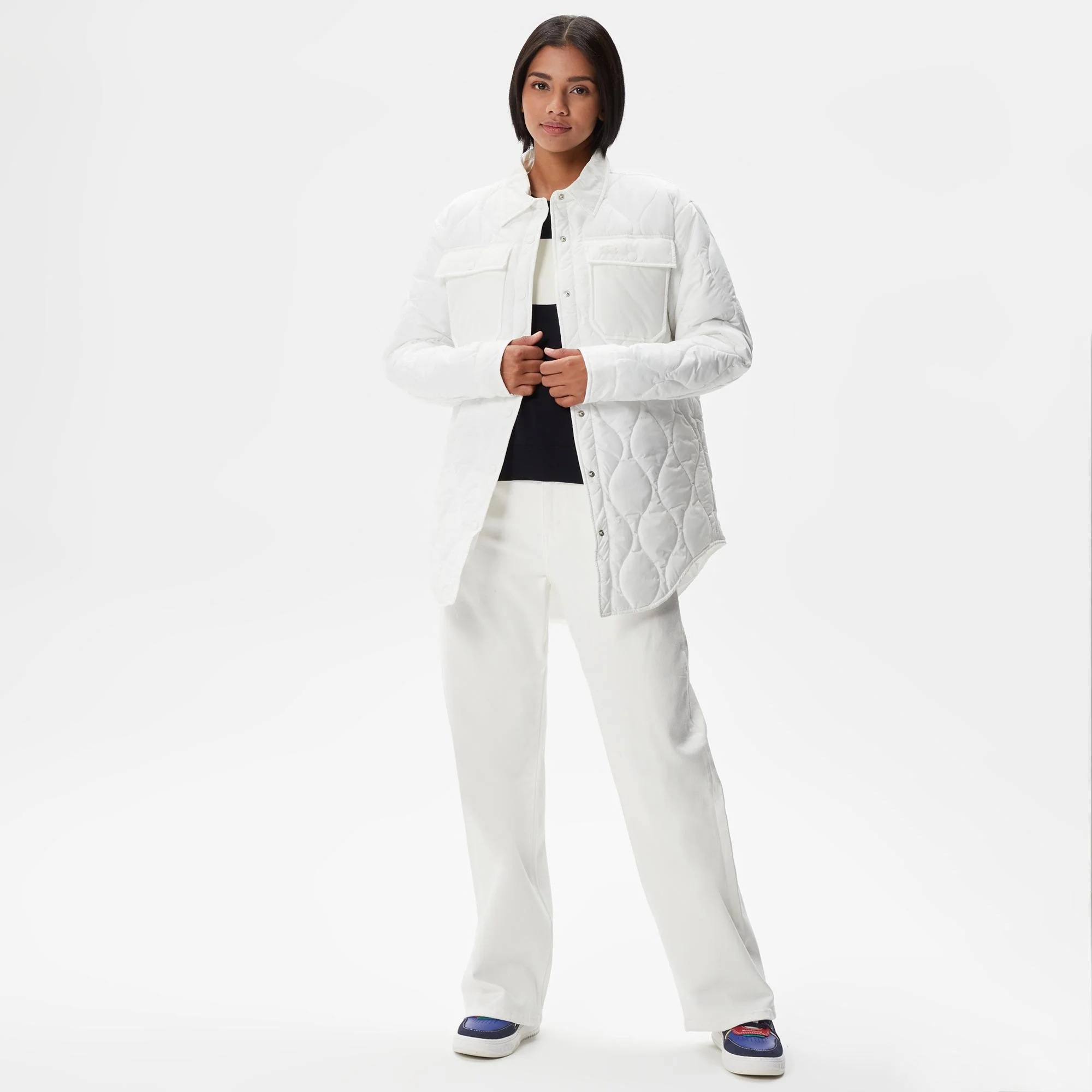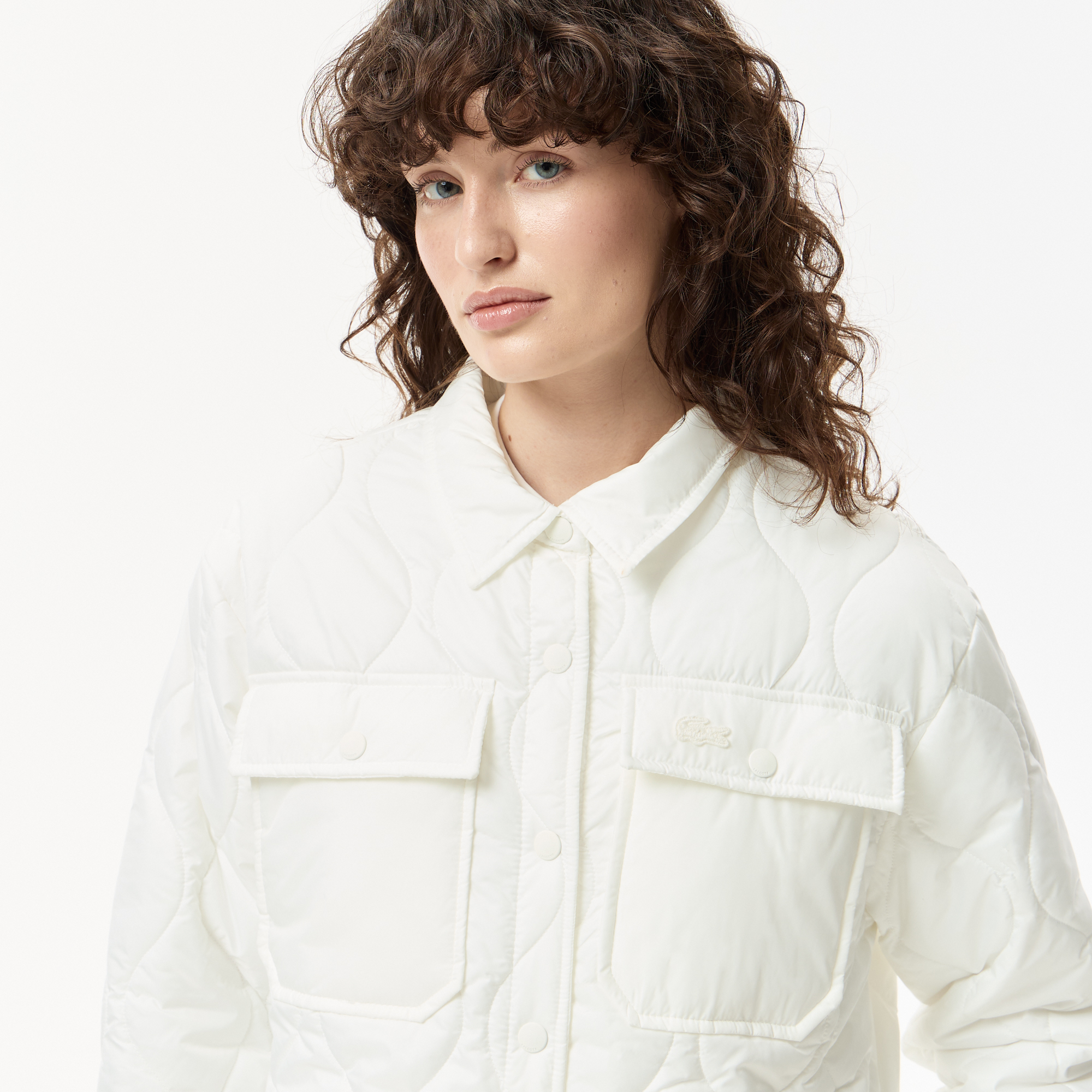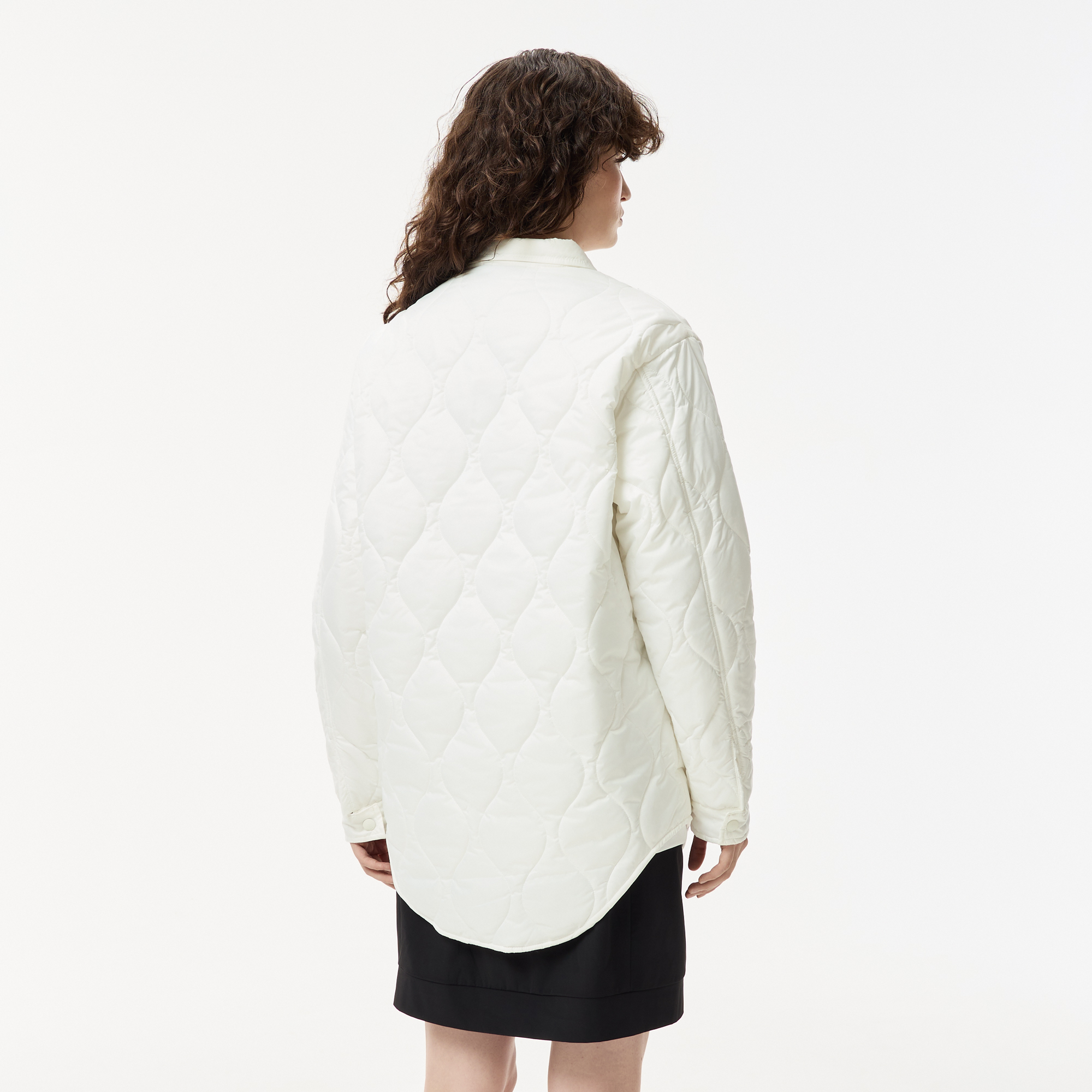 Стеганная куртка\Силуэт рубашки с острым воротником\Накладные карманы на груди\Потайной карман внутри\Логотип в тон изделия\Материал: 100% полиэстер\100% полиэстер\Рост модели 175 см, размер одежды 36