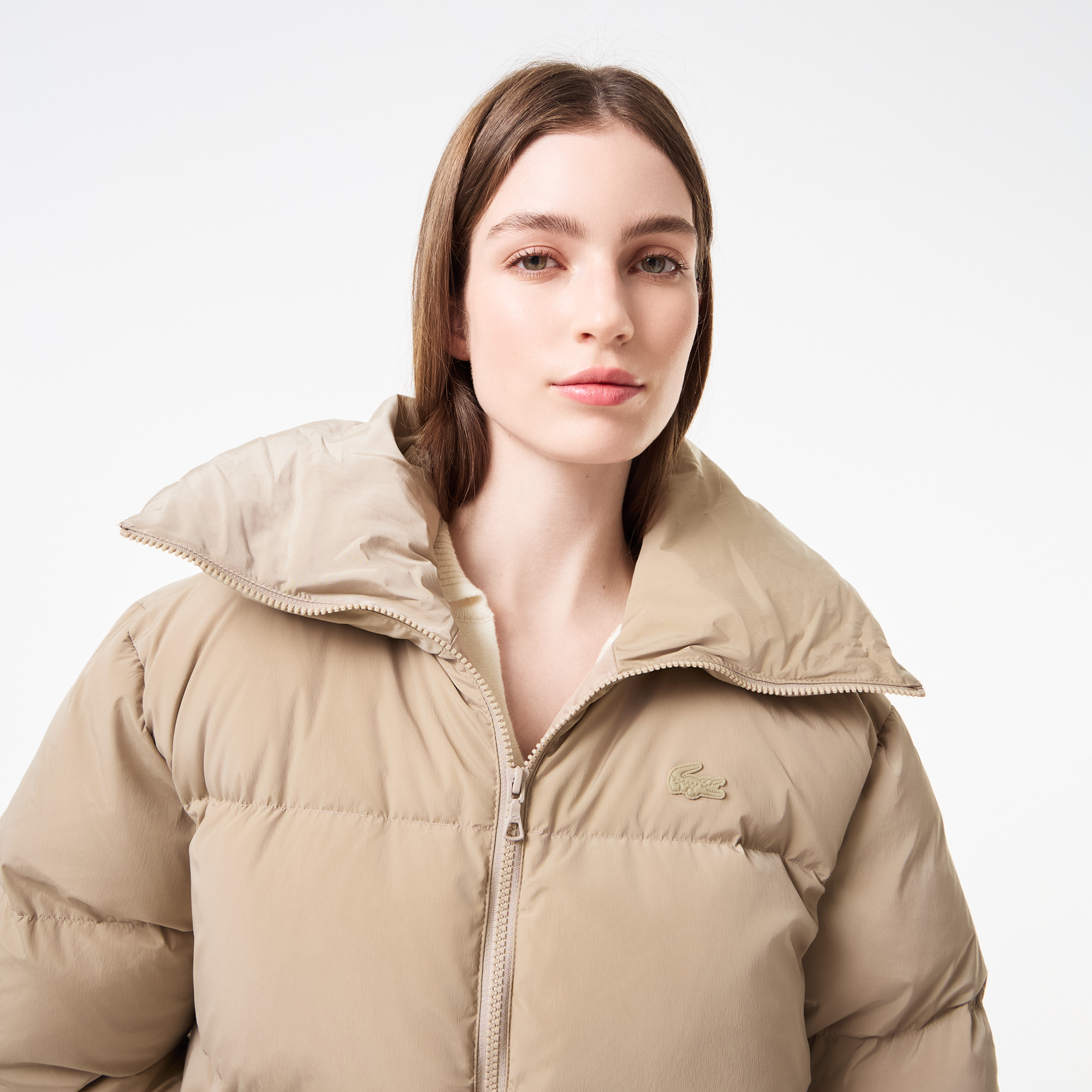 Loose Fit \ Прямой силуэт \ Воротник-стойка \Застёжка на молнии\ Два боковых кармана\Лаконичный брендинг\Материал: 95% полиамид 5% эластан \ Наполнитель: 90% пух 10% перо \ ПОдкладка: 100% полиэстер \ Рост модели: 175 см, размер 36
