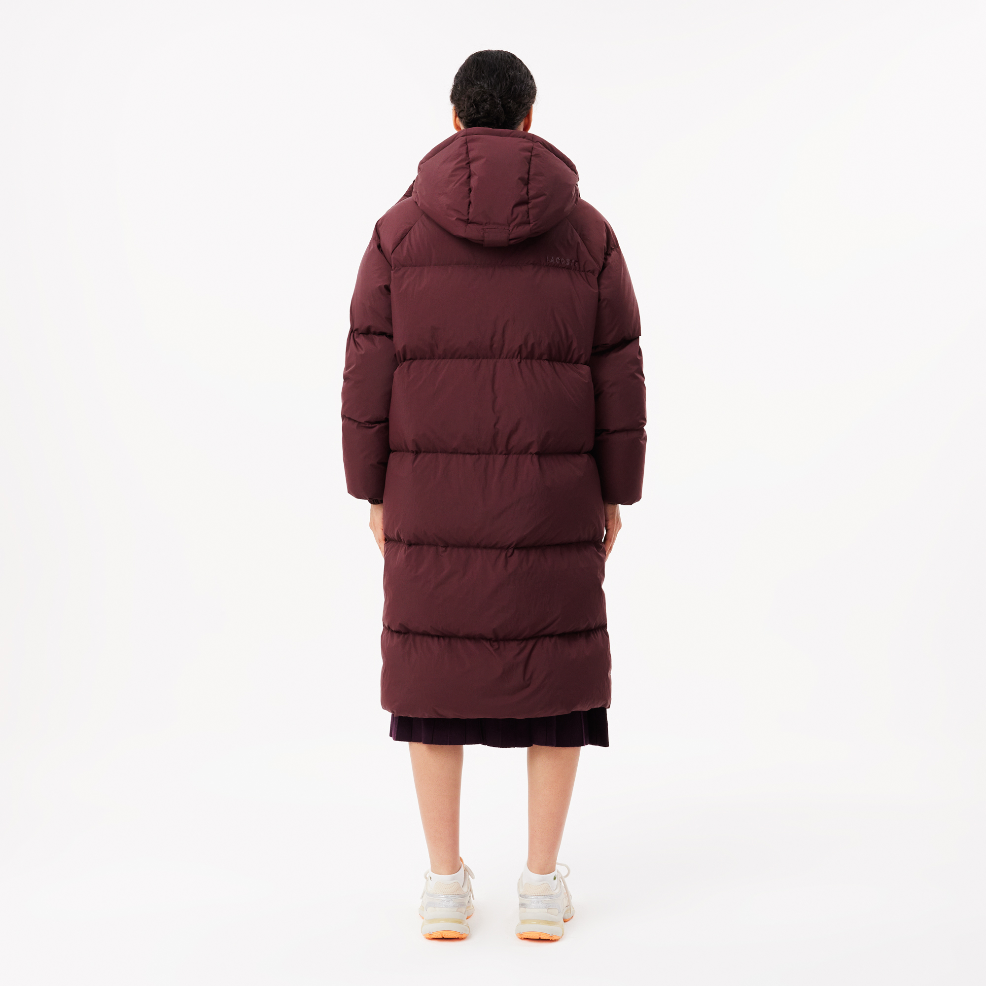 Длинный пуховик Oversize \ Переработанный полиамид, ограничивающий потребность в новых материалах \ Облегающий крой, заниженные плечи \ Мягкий пух \ Теплый стеганый капюшон \Лого крокодила на груди \ Это изделие имеет Oversize-крой. Предпочитаете обычную