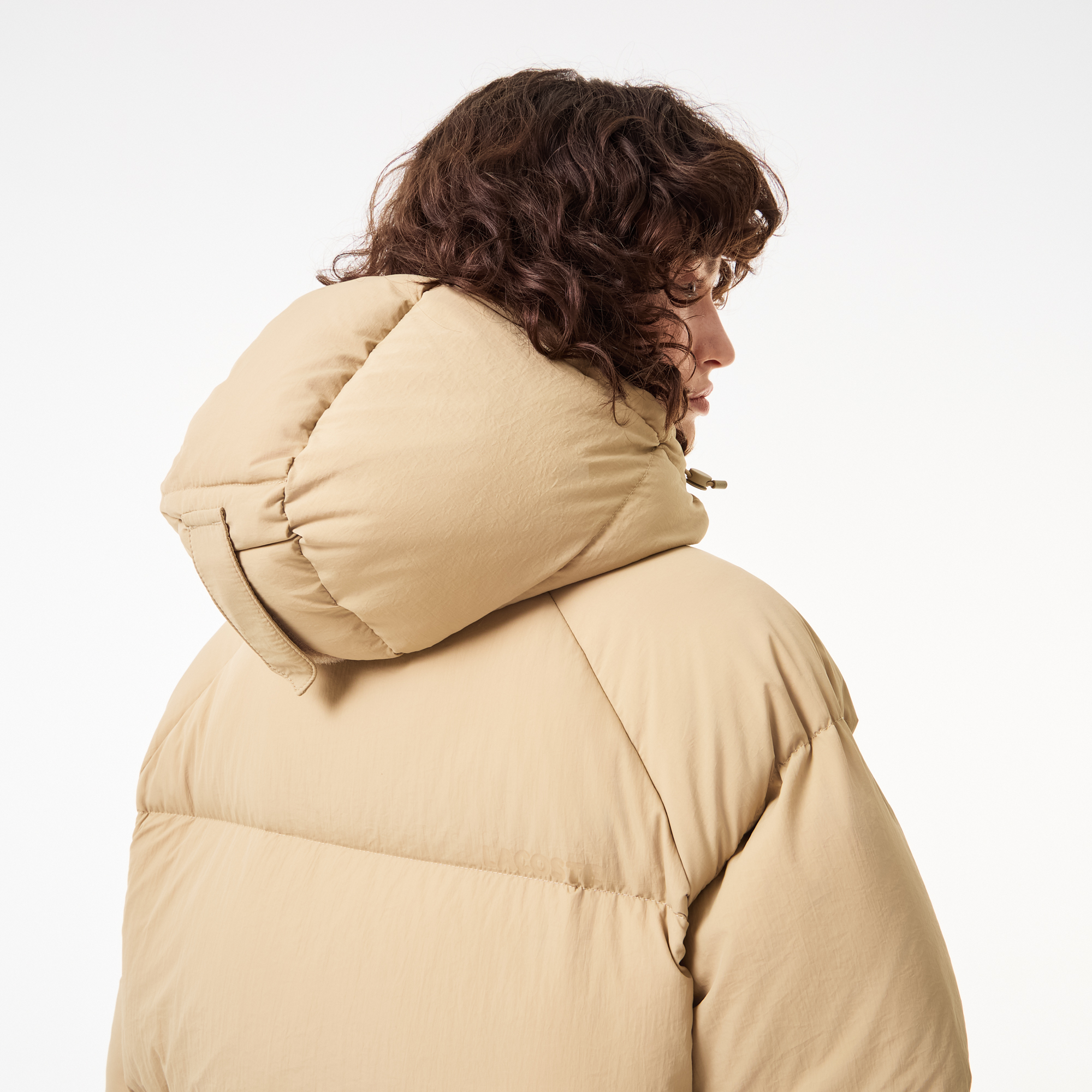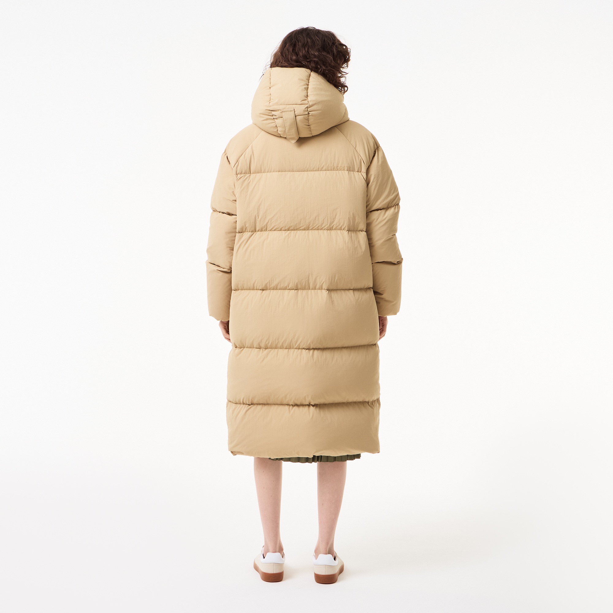 Длинный пуховик Oversize \ Переработанный полиамид, ограничивающий потребность в новых материалах \ Облегающий крой, заниженные плечи \ Мягкий пух \ Теплый стеганый капюшон \Лого крокодила на груди \ Это изделие имеет Oversize-крой. Предпочитаете обычную