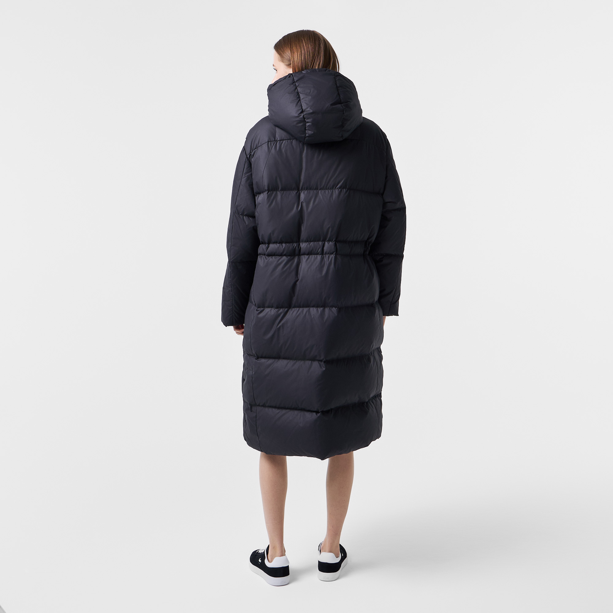 Длинный пуховик Oversize \ Переработанный полиамид, ограничивающий использование сырья. \ Двусторонняя молния \ Регулируемая талия с завязками \ 3 кармана, 1 с внутренней стороны \Лого крокодила на груди \Материал: 100% полиамид \100% полиэстер\ Наполнит