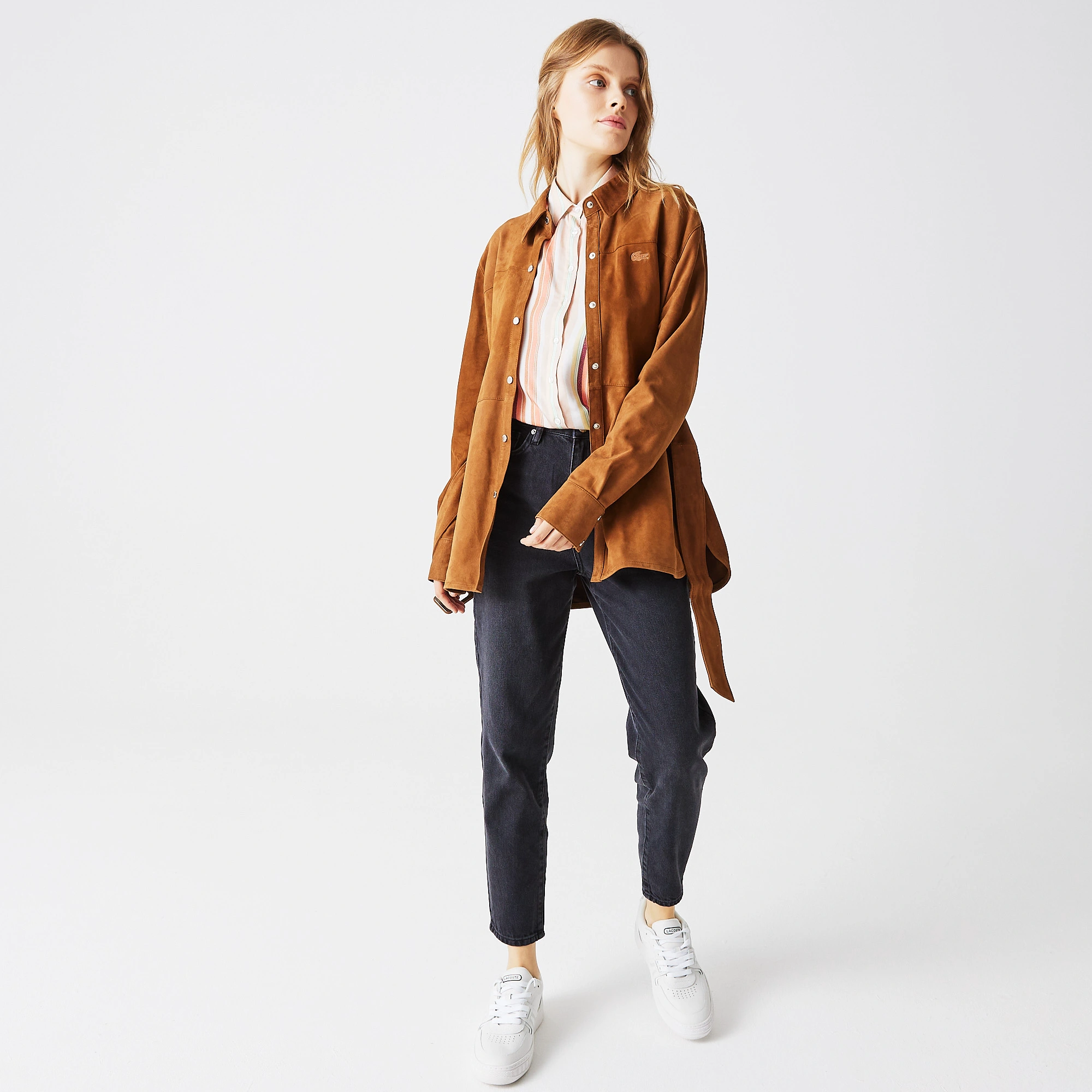 Обычная посадка \ Длинные рукава\ Воротник рубашки \ Кнопка Деталь \ Регулируемая талия \ Информация о модели: Рост: 177 см, Грудь: 82 см, Талия: 62 см, Бедра: 89 см. \ Размер модели: 36 \ Данная куртка выполнена в стиле рубашки с поясом на пуговицах-кн