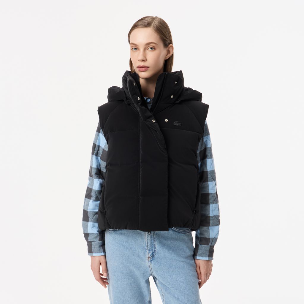 Короткий жилет\ Большой капюшон \ Стёганный \ Застёжка на кнопках \ Материал: 100% полиэстер