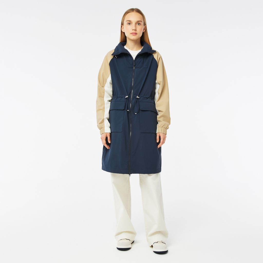 Сборный капюшон \ Пояс для рекулировки пояса \ Длинна чуть выше колен \ Эластичные манжеты рукавов \ Внешние карманы \ Материал: 85% полиамид 15% эластан\100% полиэстер