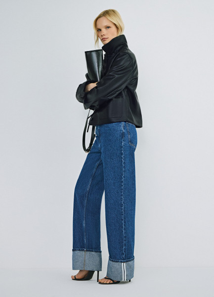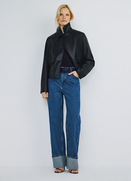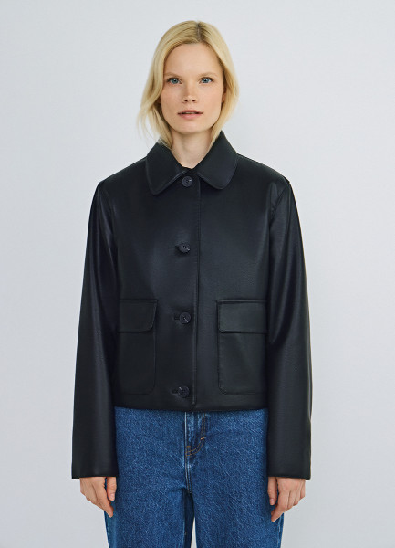 Короткая куртка из искусственной кожи, Черный