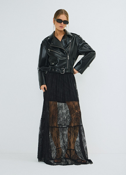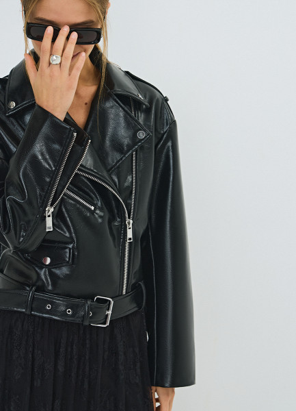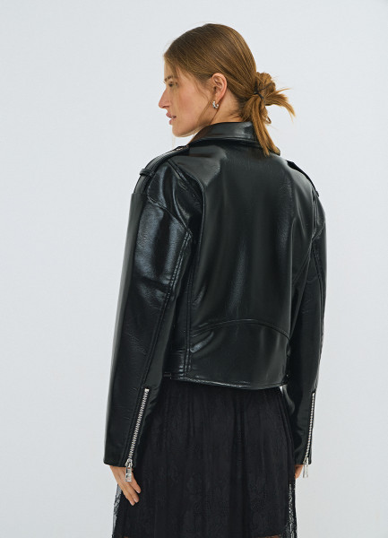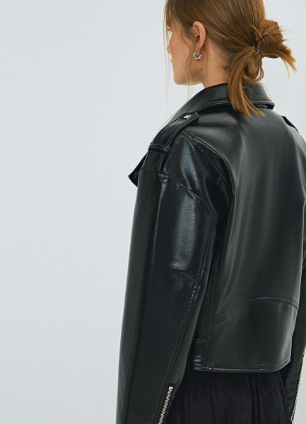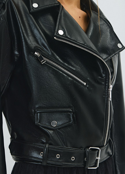 Короткая косуха из искусственной кожи, Черный