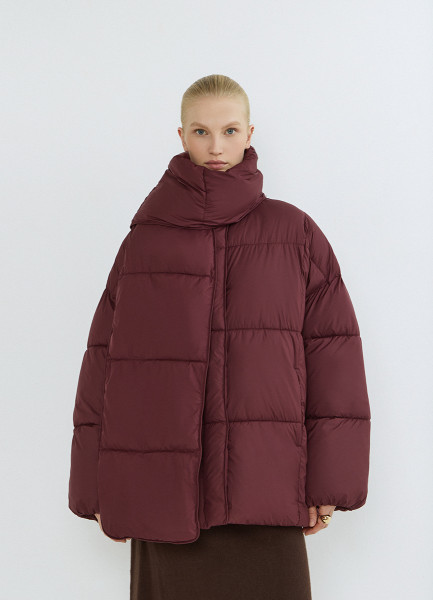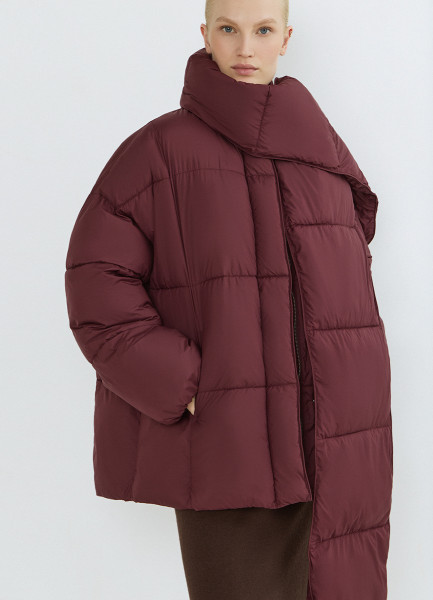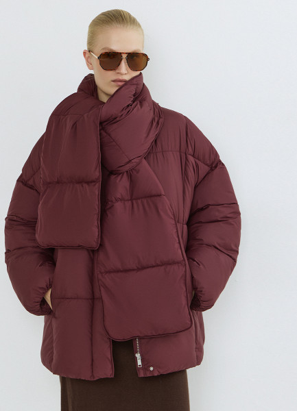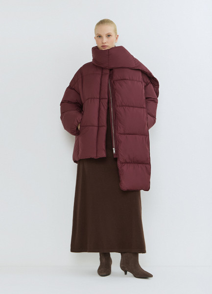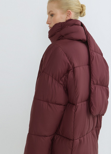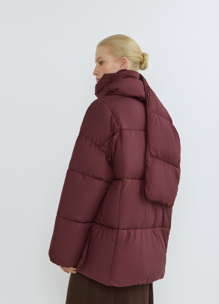 Утеплённая стёганая куртка с шарфом, Коричневый