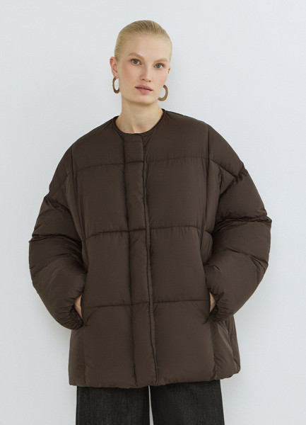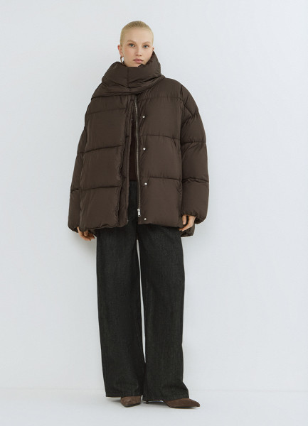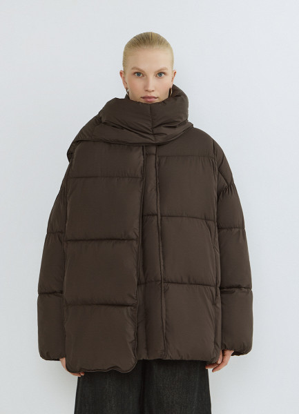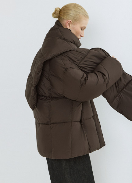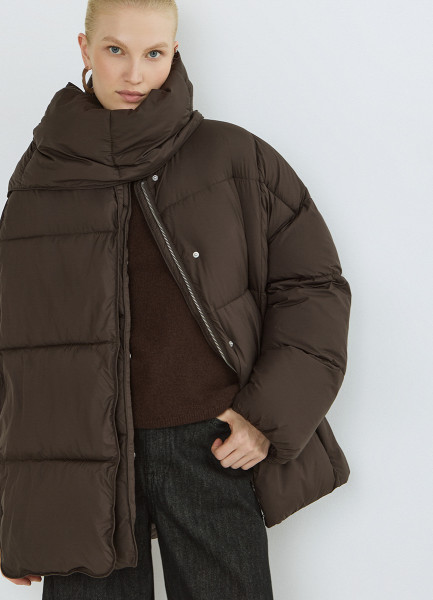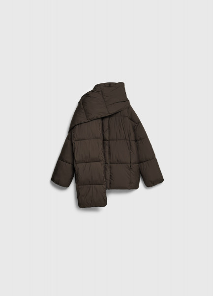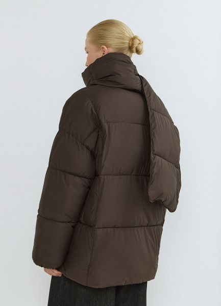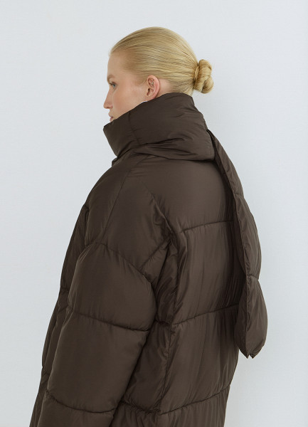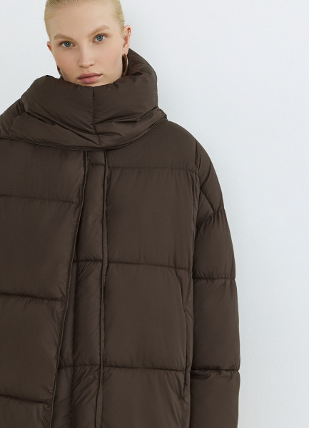 Утеплённая стёганая куртка с шарфом, Коричневый