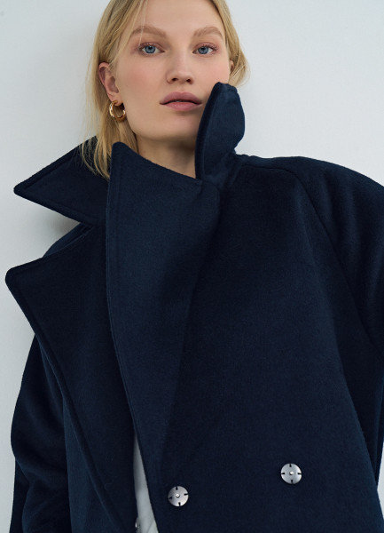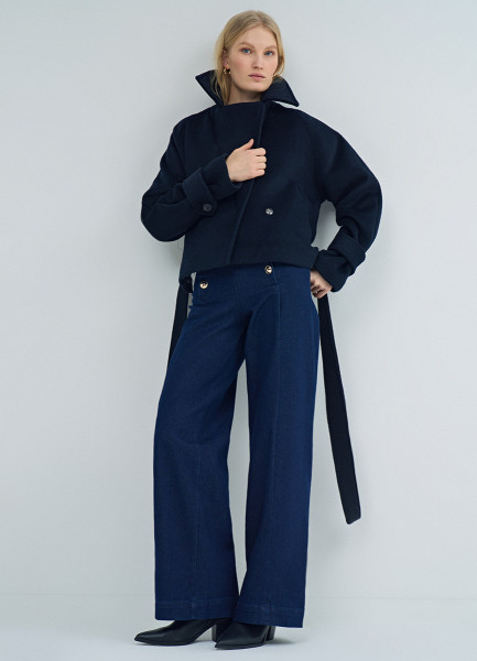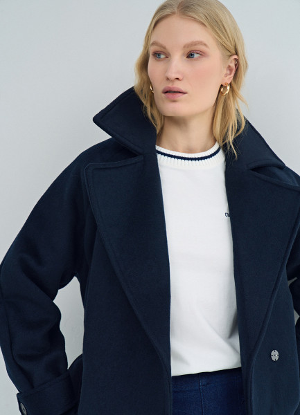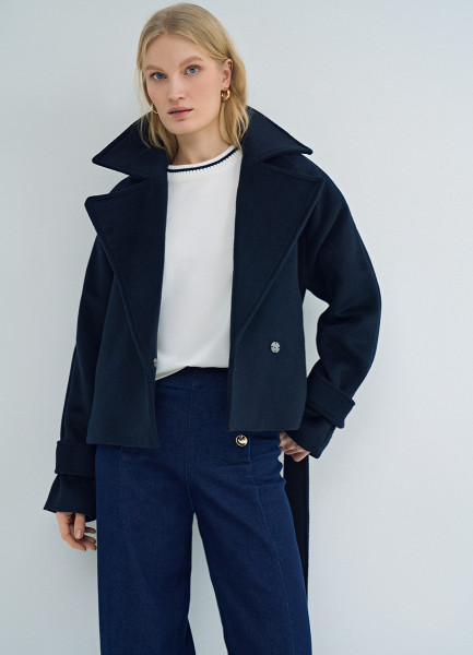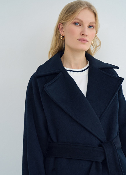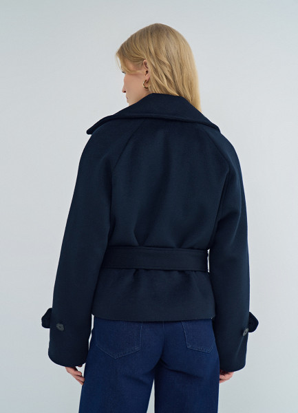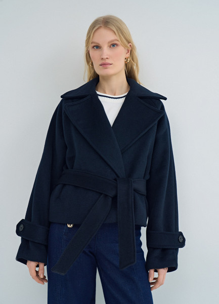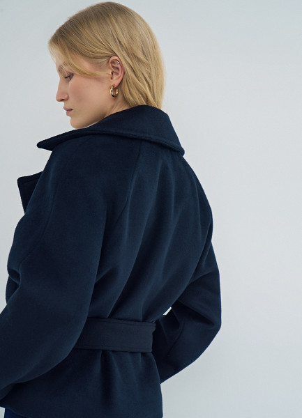 Короткое пальто на поясе, Синий