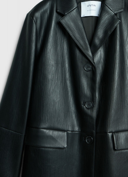Куртка из искусственной кожи с тиснением под крокодила, Коричневый
