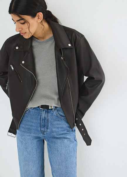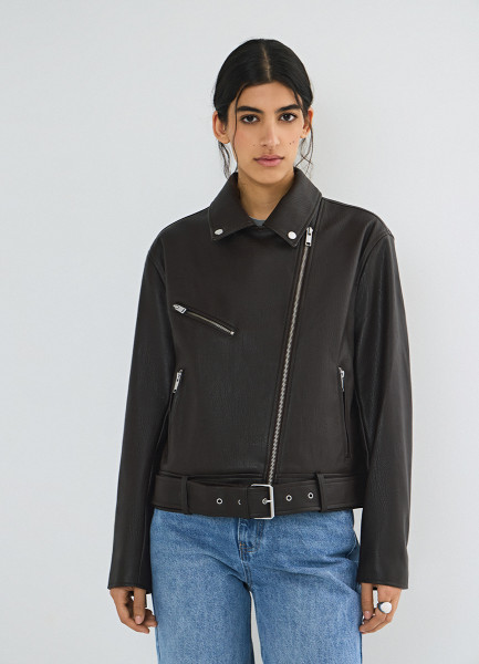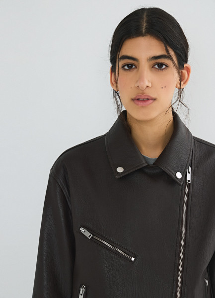 Куртка из искусственной кожи с тиснением под крокодила, Коричневый