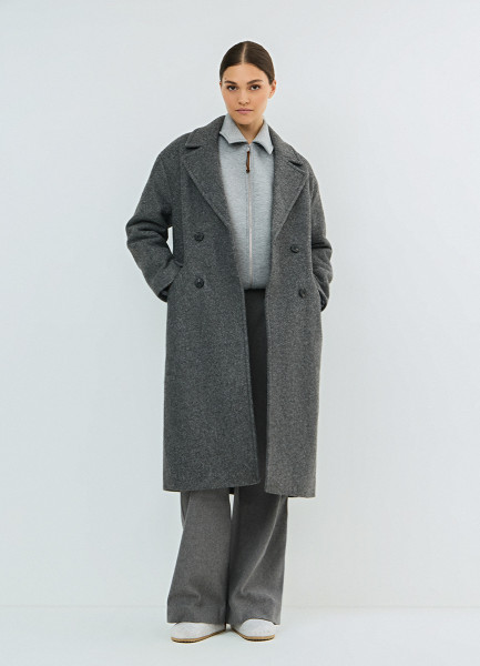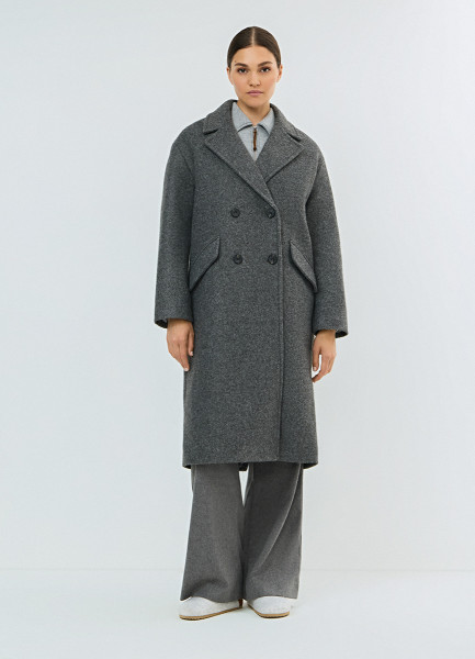 Длинное двубортное пальто, Серый