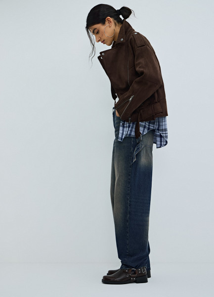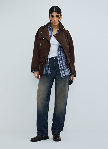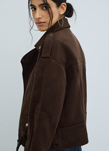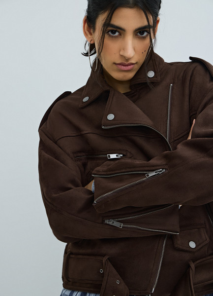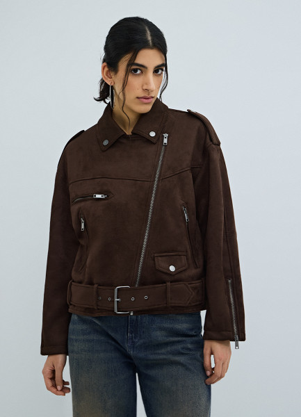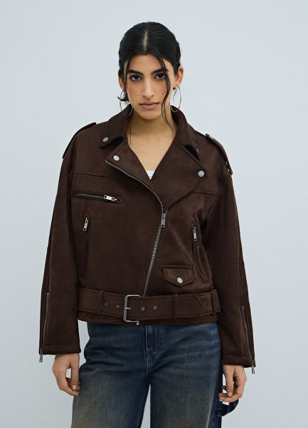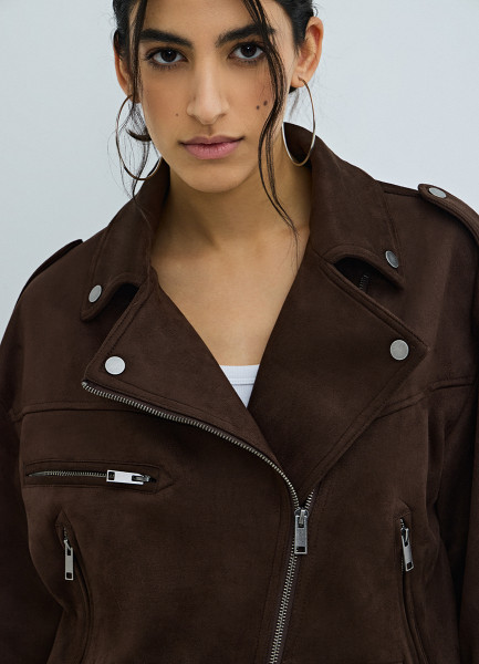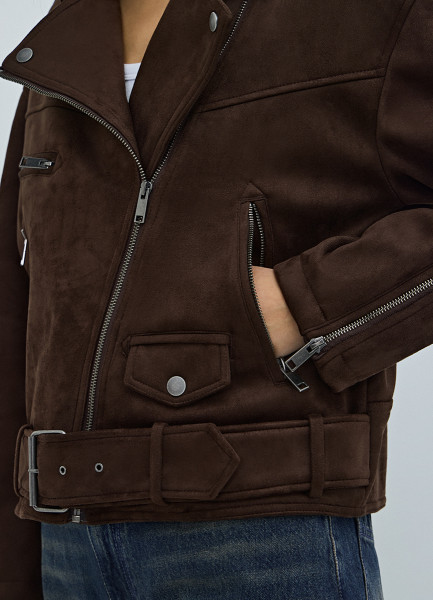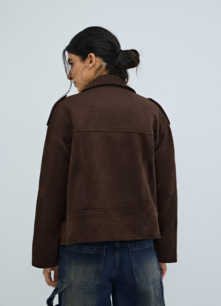 Короткая куртка-косуха из искусственной замши, Коричневый