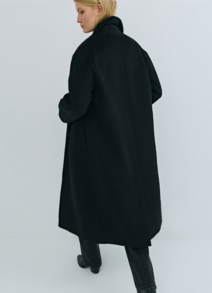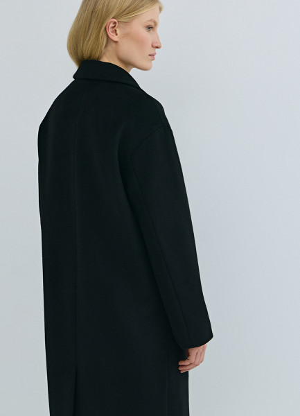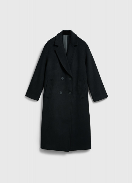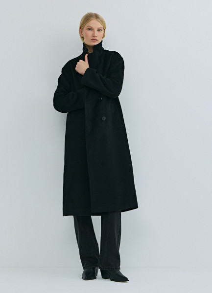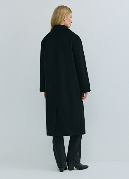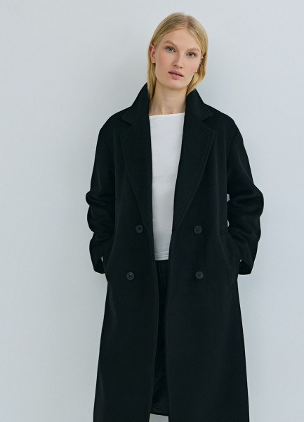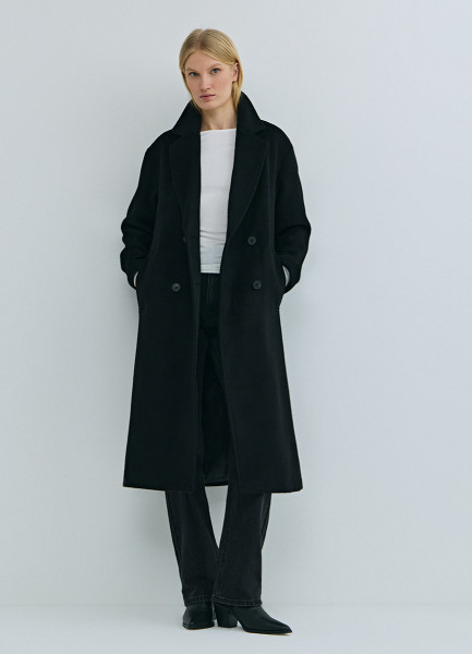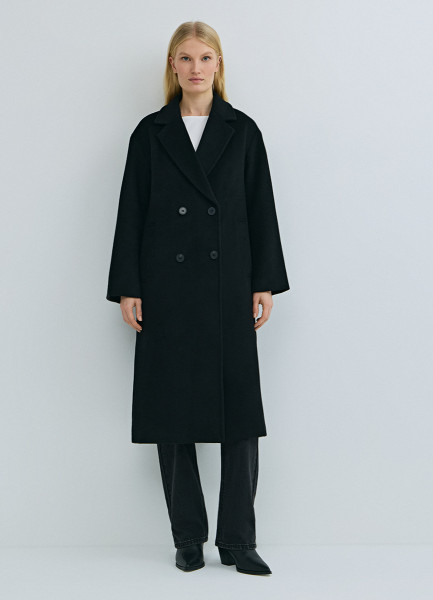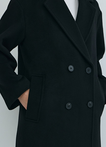Длинное двубортное пальто из шерсти, Черный
