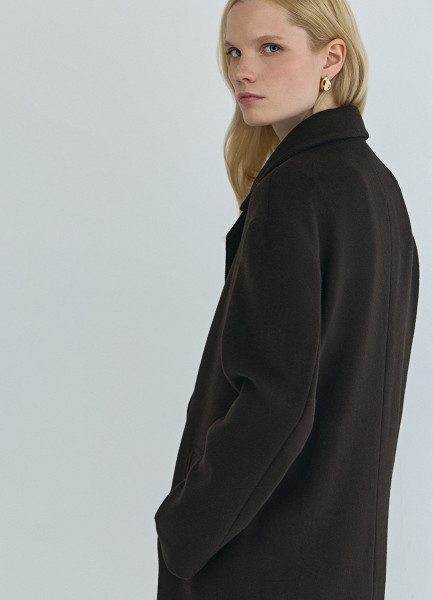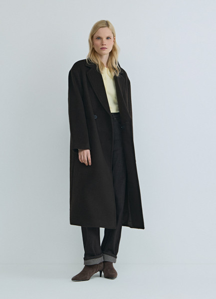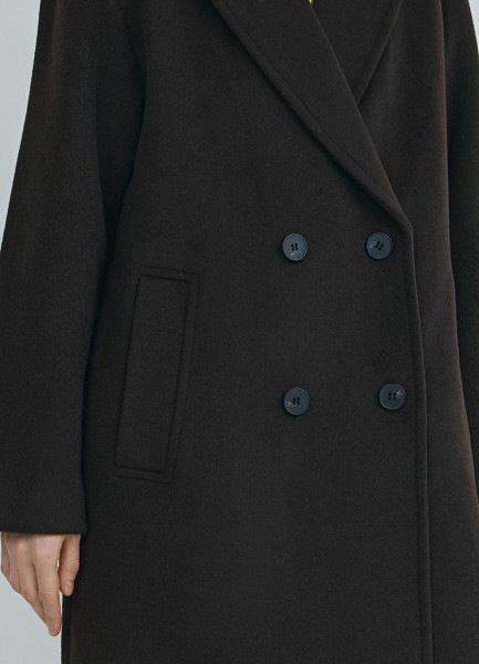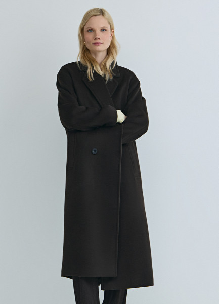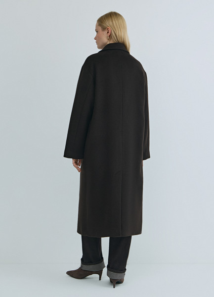Длинное двубортное пальто из шерсти, Коричневый