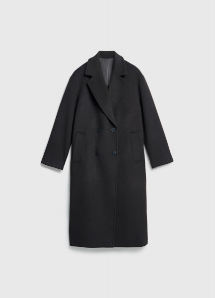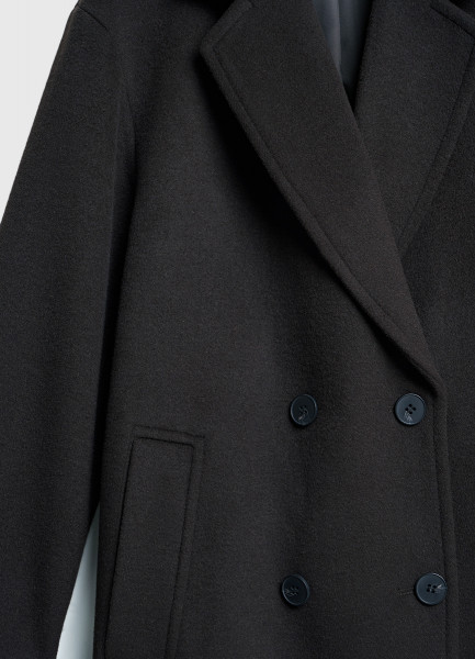 Длинное двубортное пальто из шерсти, Черный
