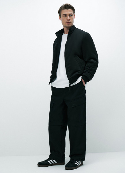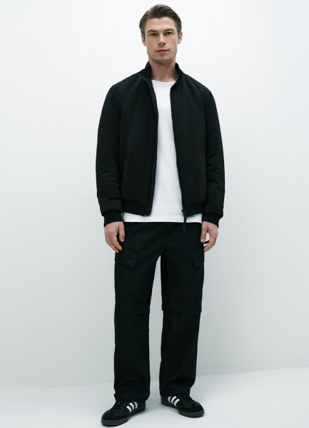 Утеплённый бомбер с воротником-стойкой, Черный