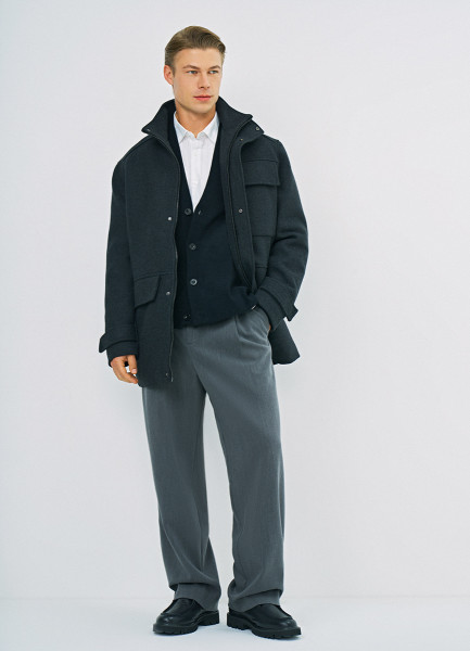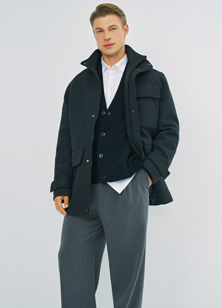 Основная ткань: 56% Полиэстер, 40% Шерсть, 2% Акрил, 2% Полиамид; Подкл: 100% Полиэстер; Утеплитель: 100% Полиэстер
