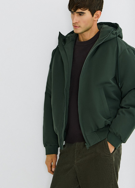 Утеплённая куртка с капюшоном из фактурной ткани, Серый