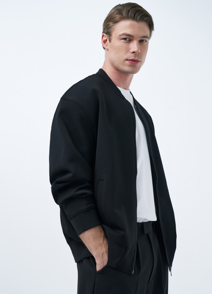 Бомбер на молнии из ткани интерлок, Черный