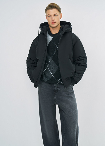 Утеплённая куртка с капюшоном из фактурной ткани, Серый