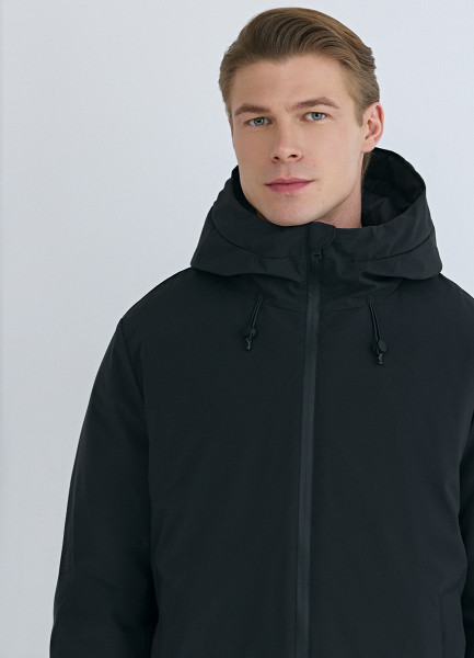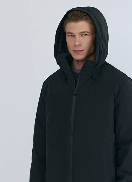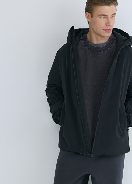 Утеплённая куртка с капюшоном, Черный