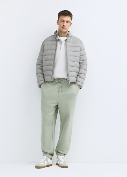Утеплённый бомбер с воротником-стойкой, Зеленый