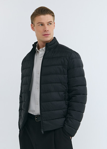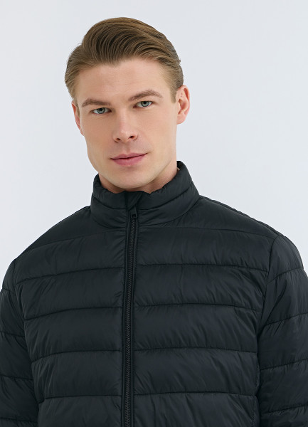 Утеплённая лёгкая куртка с воротником-стойкой, Черный