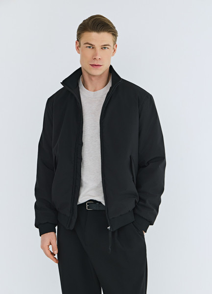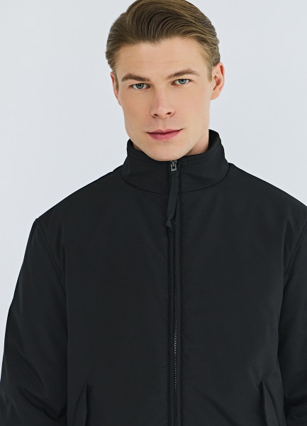 Утеплённая лёгкая куртка с воротником-стойкой, Черный