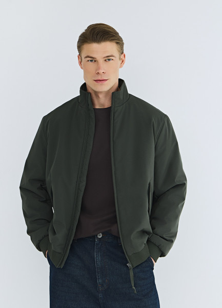 Утеплённая куртка с воротником-стойкой, Зеленый